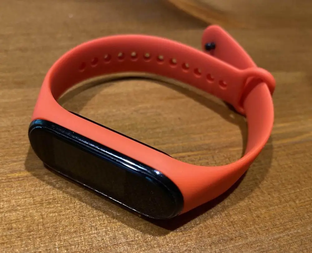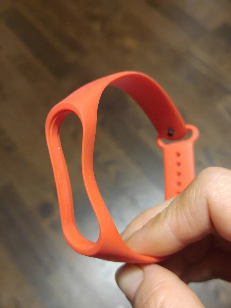 Заказ в СПб шёл 2,5 недели, трек не отслеживался, с продавцом не общалась. Состояние браслета отличное, запаха и повреждений нет, немного тонкий, но это и не оригинал. Для MiBand 4 подходит идеально. Цвет не красный, ближе к красно-оранжевому.