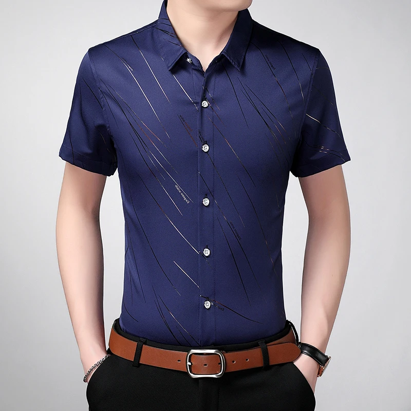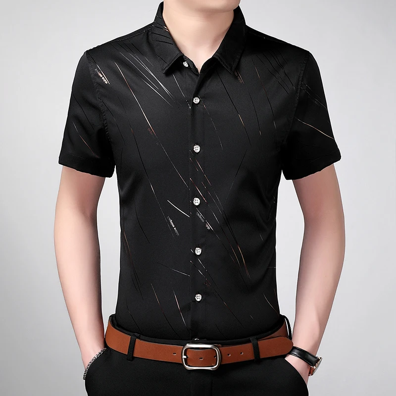 Мужская деловая рубашка, из хлопка, с принтом в полоску, с коротким рукавом, Размер 7XL, 2019