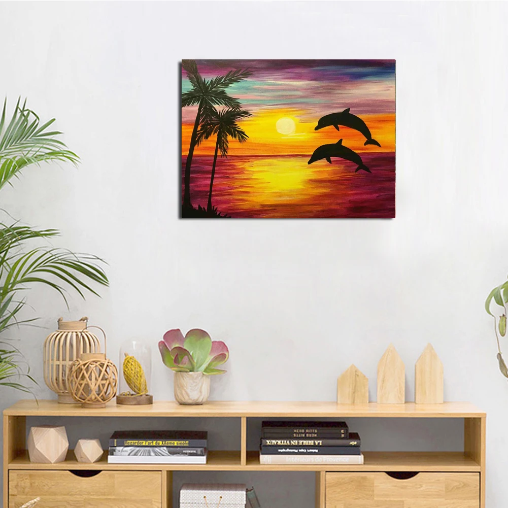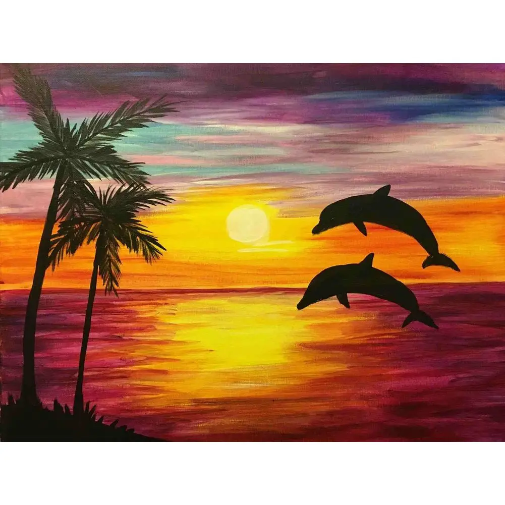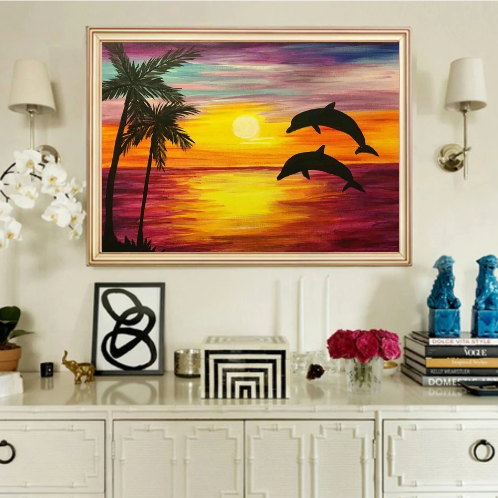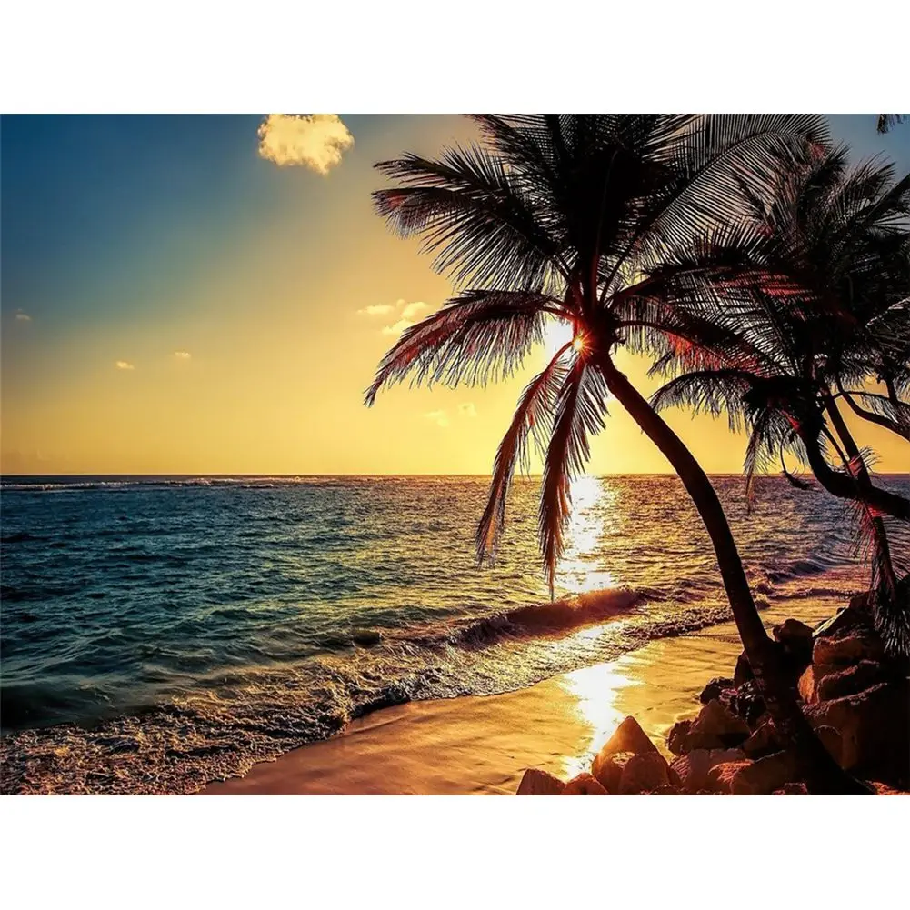 Алмазная 5D картина сделай сам, закат, пляж, смола, круглая вышивка...