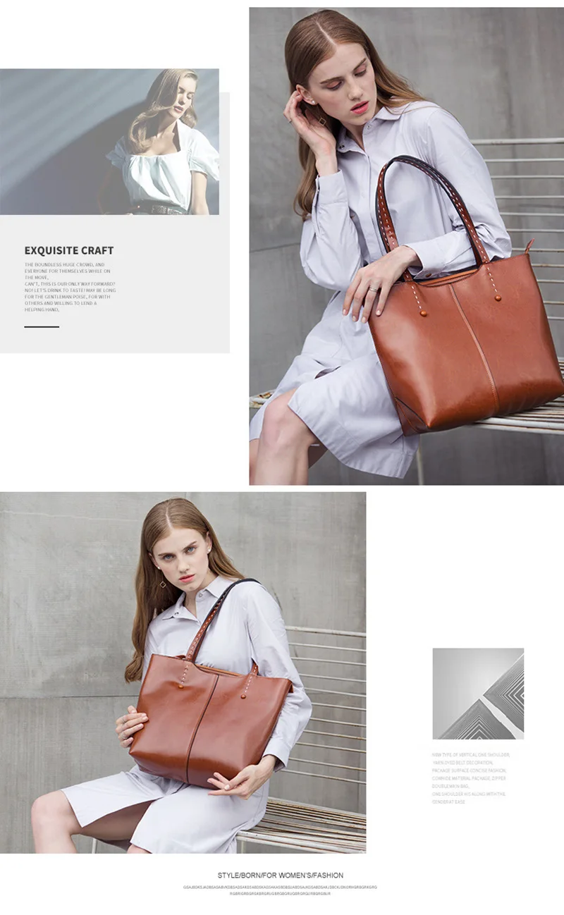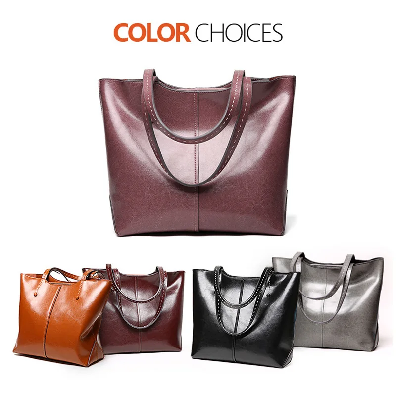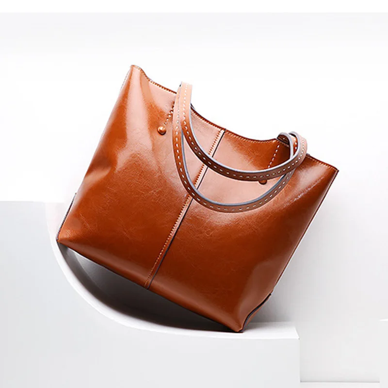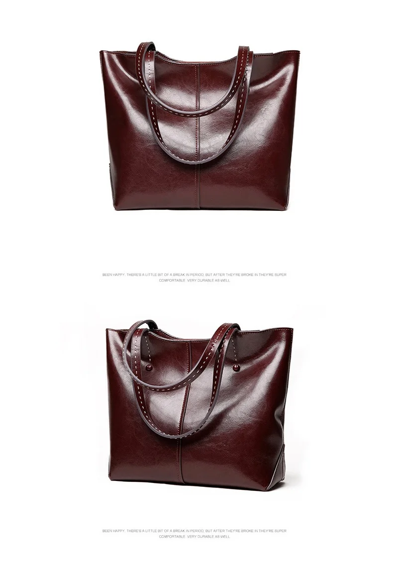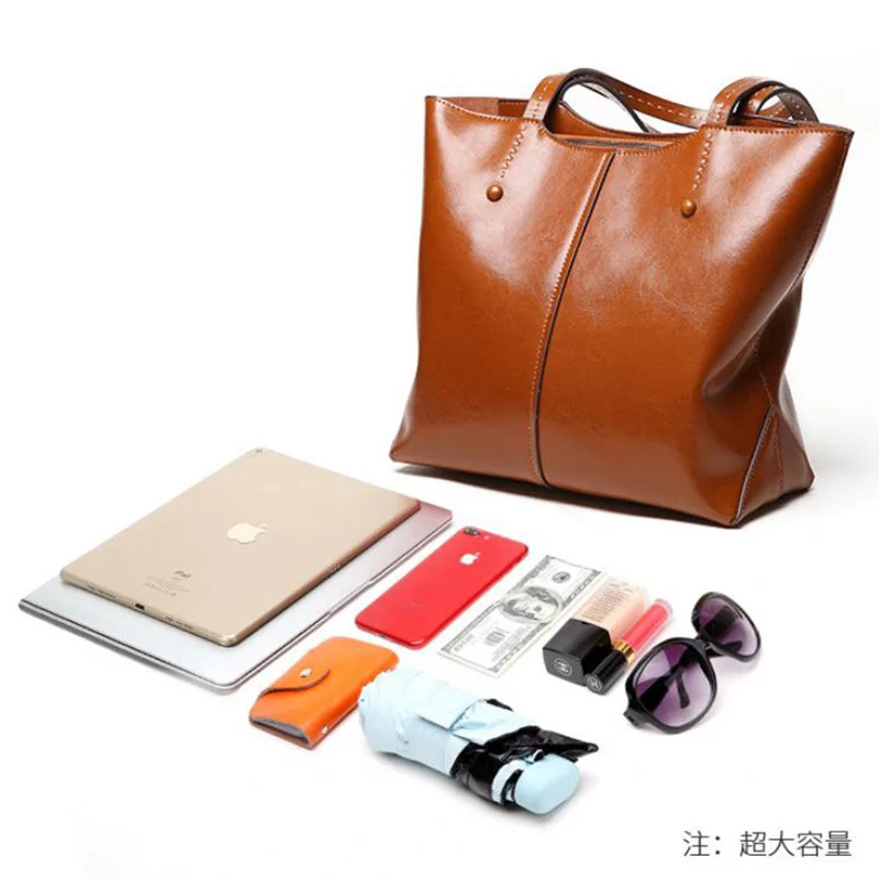 Новинка 2019, женская кожаная сумка, мягкая Вощеная кожа, большая вместительность, женские сумки, модные женские повседневные сумки через плечо