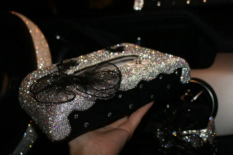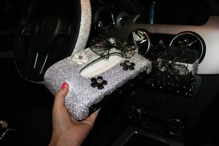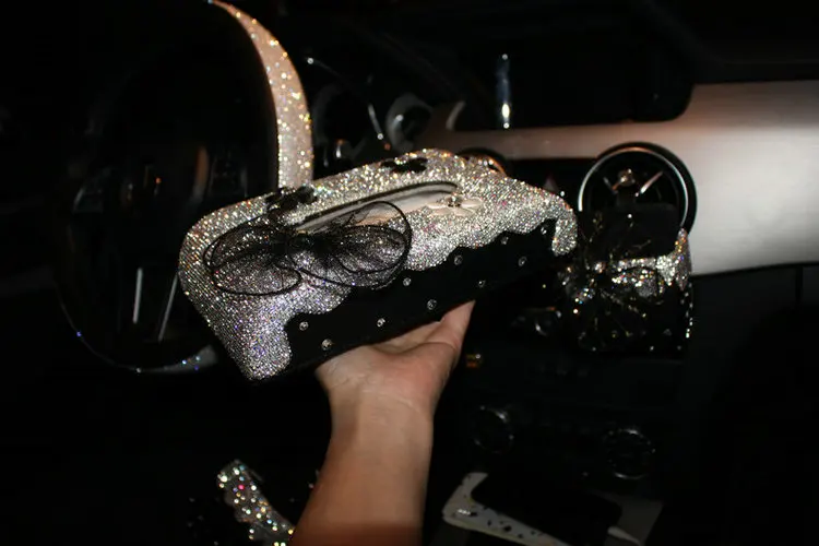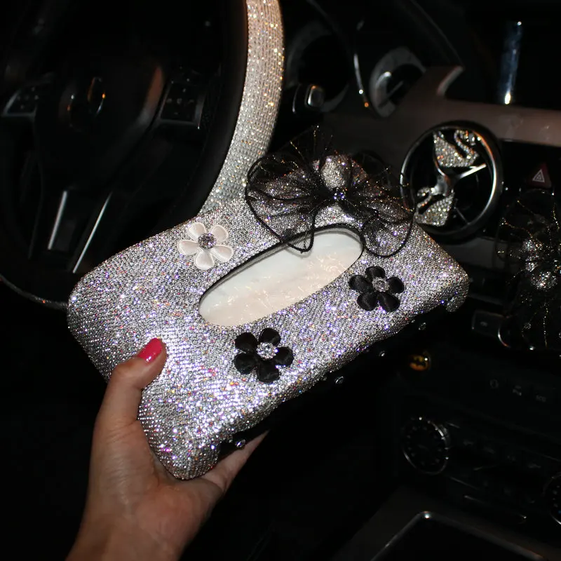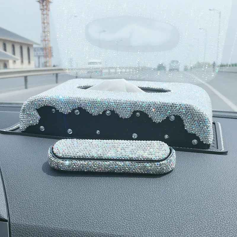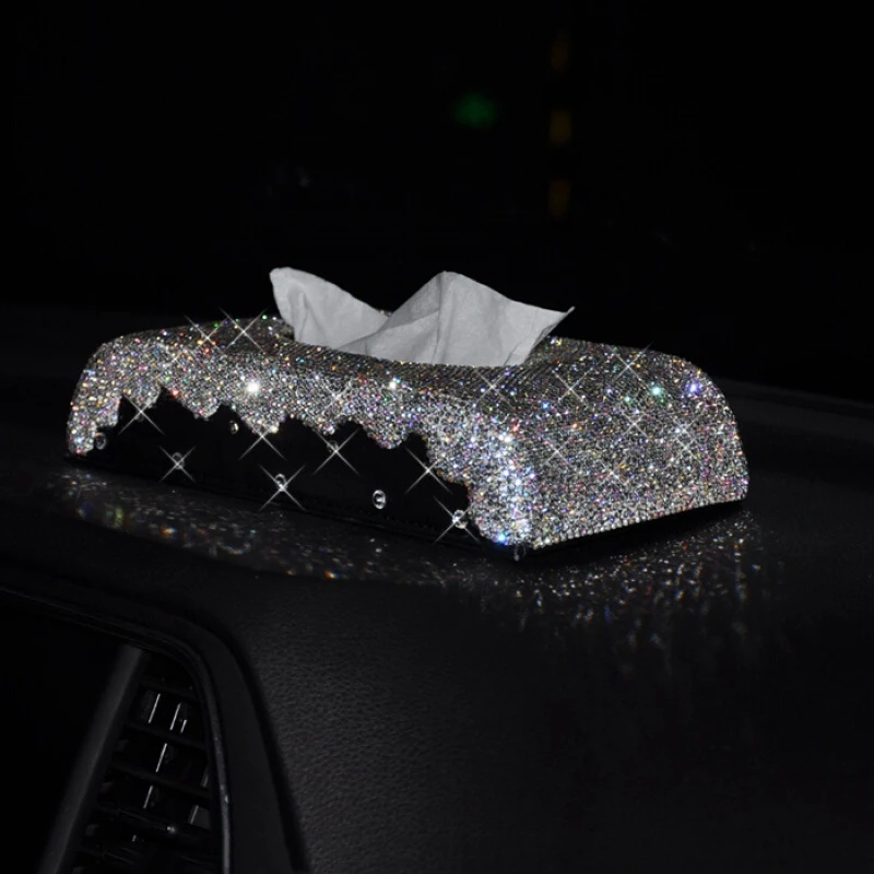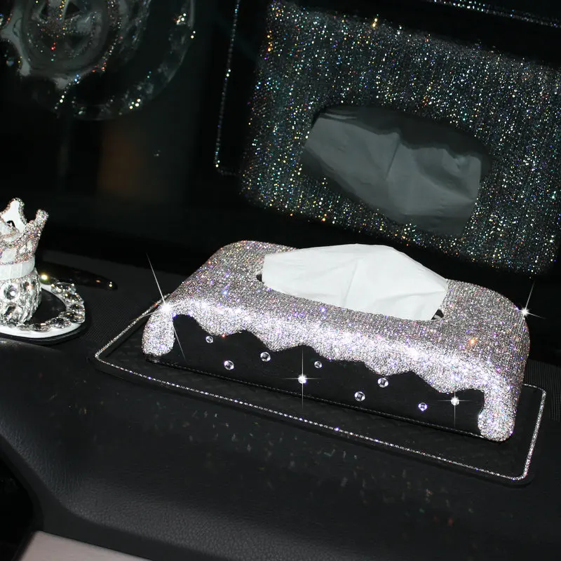 Коробка для салфеток из искусственной кожи, с блестящими кристаллами и бриллиантами, поднос для салфеток с украшением для дома и автомобиля нескользящий коврик