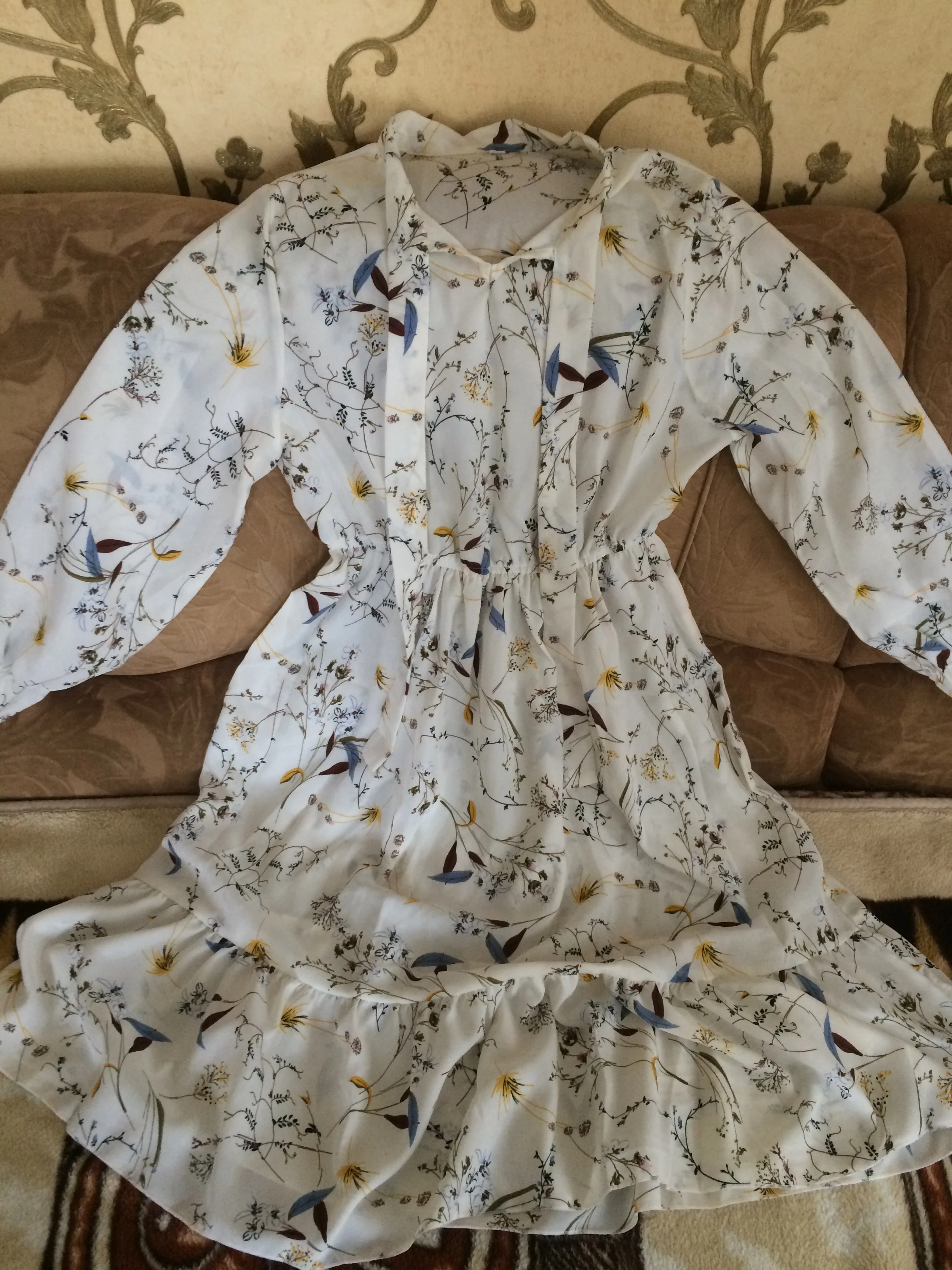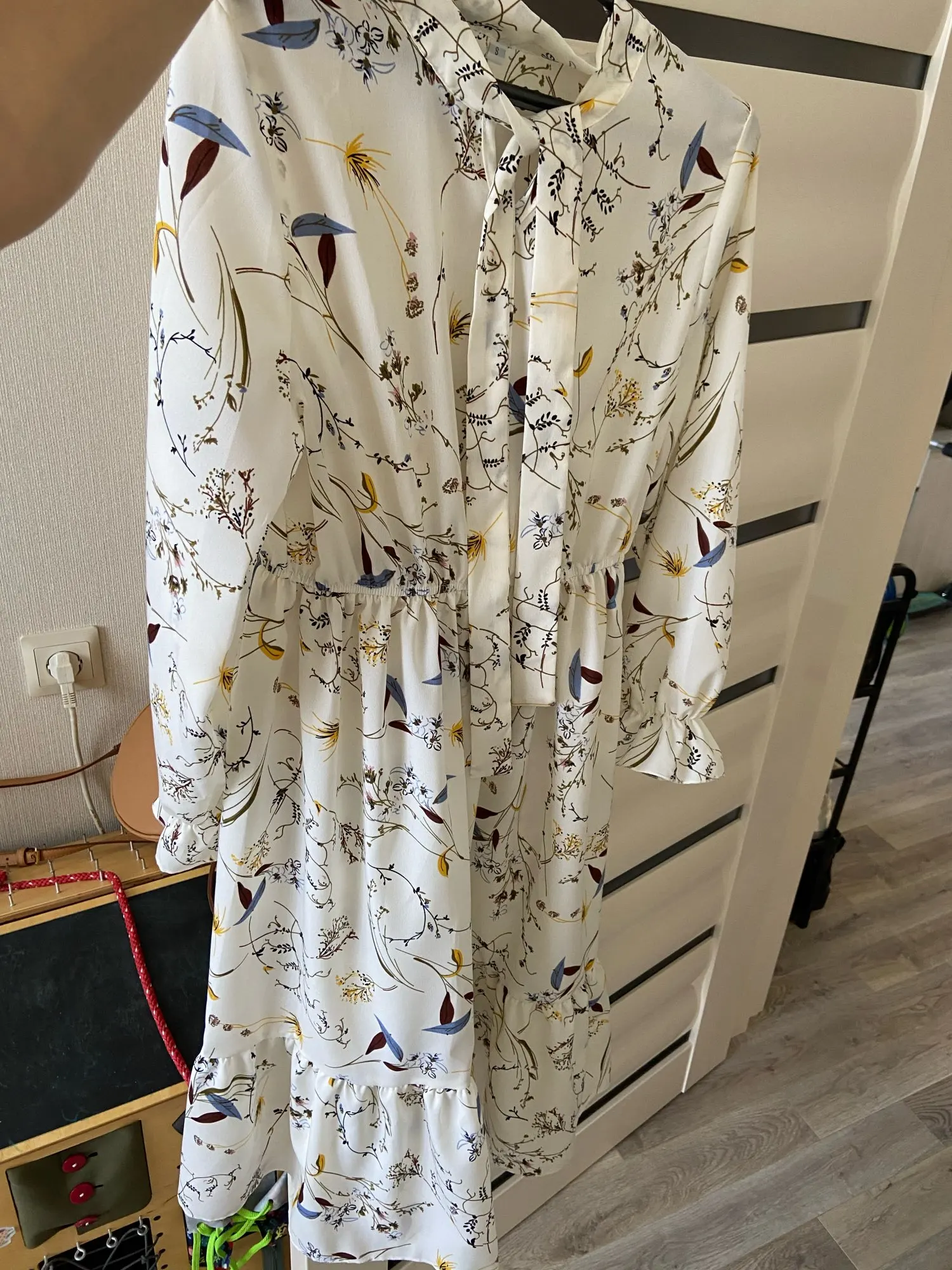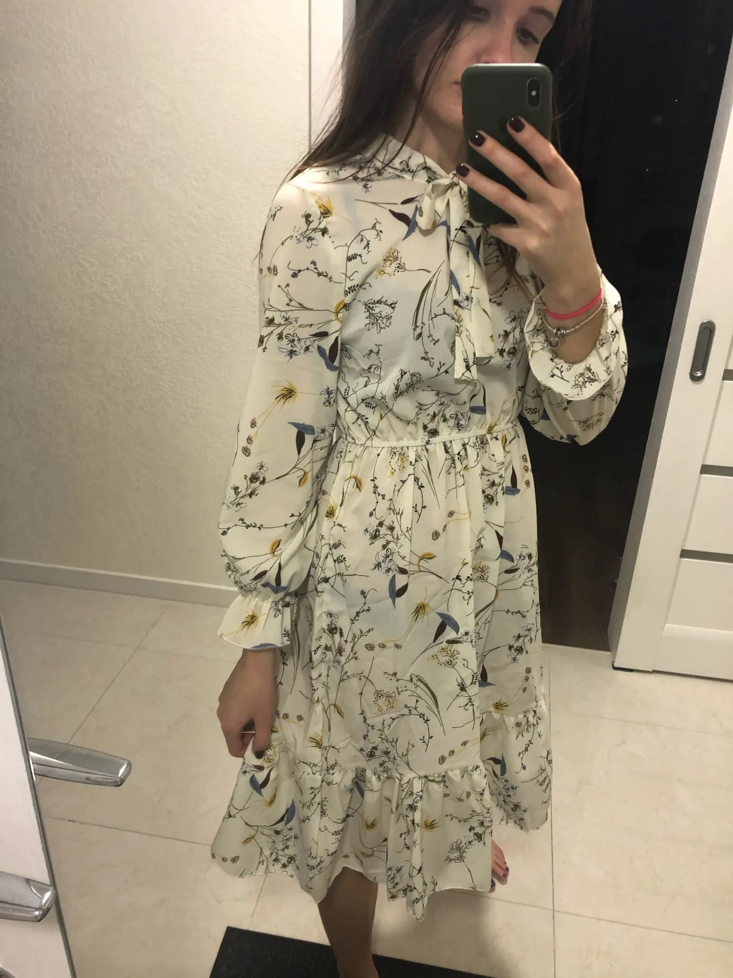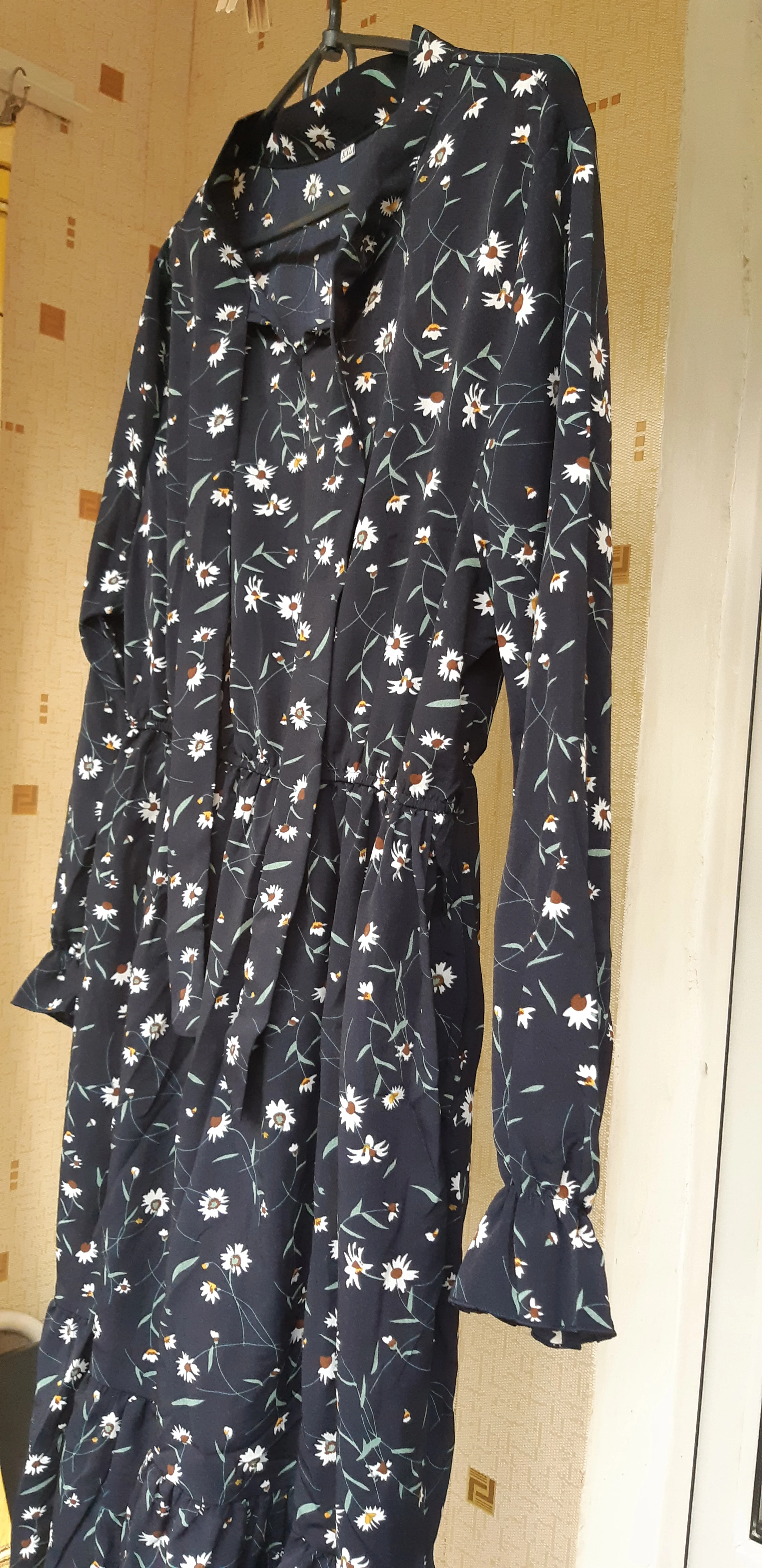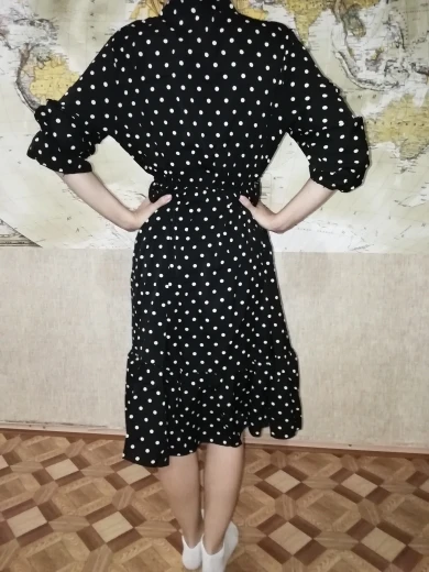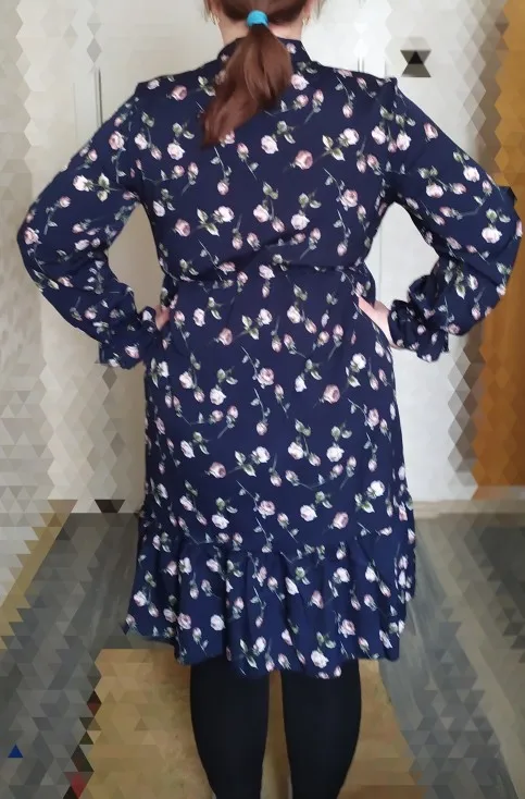 Платье хорошее , но единственное , что смущает меня , резинка не на талии , а у меня на рёбрах , под грудью , при моей фигуре песочные часы , смотреться не очень , если только постоянно стягивать платье в низ . А так пришло все ровное , без брака , платье понравилось