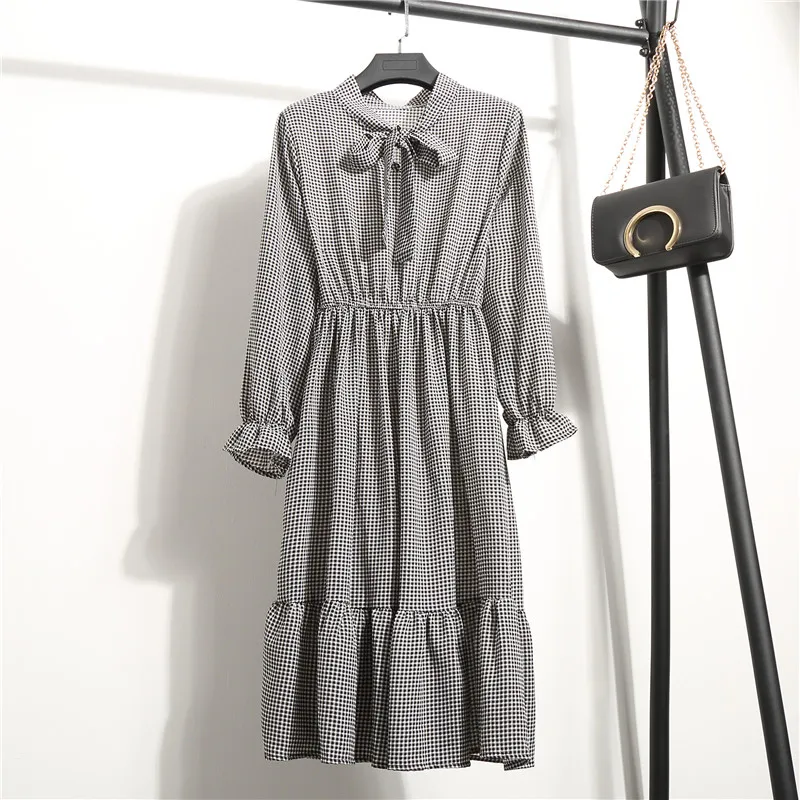 Женское винтажное платье-трапеция средней длины, с белым бантом и цветочным принтом, осень 2021