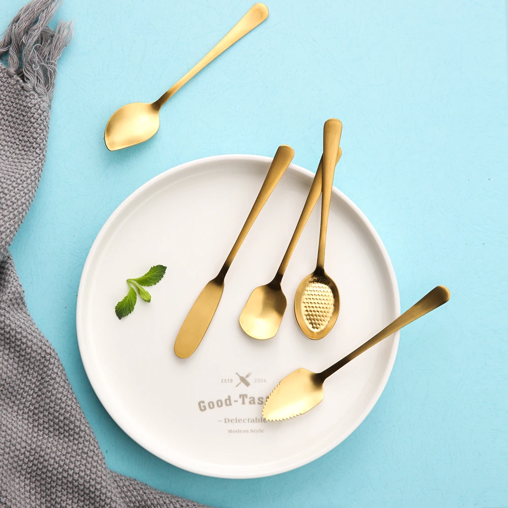 Ложка из нержавеющей стали, Милые Ложки для мороженого, кофе, фруктов, нож для масла, чайная ложка, позолоченная десертная ложка для торта, сахара, посуда
