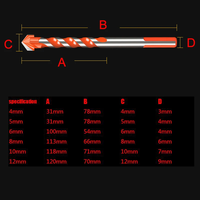 Треугольное сверло для керамической стены, стекла, цемента, бетона, открывалка для отверстий, камень, красный станок для резки ногтей, металлическая дрель 4-12 мм