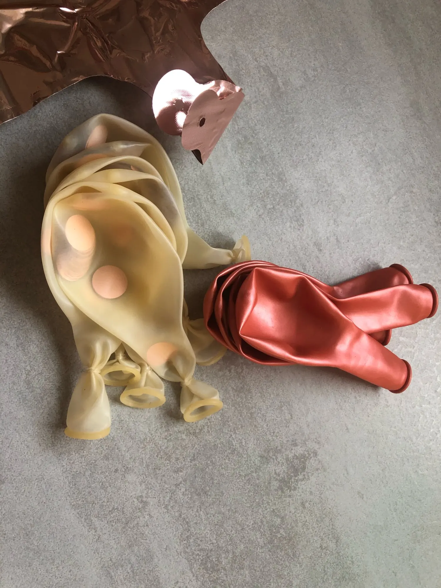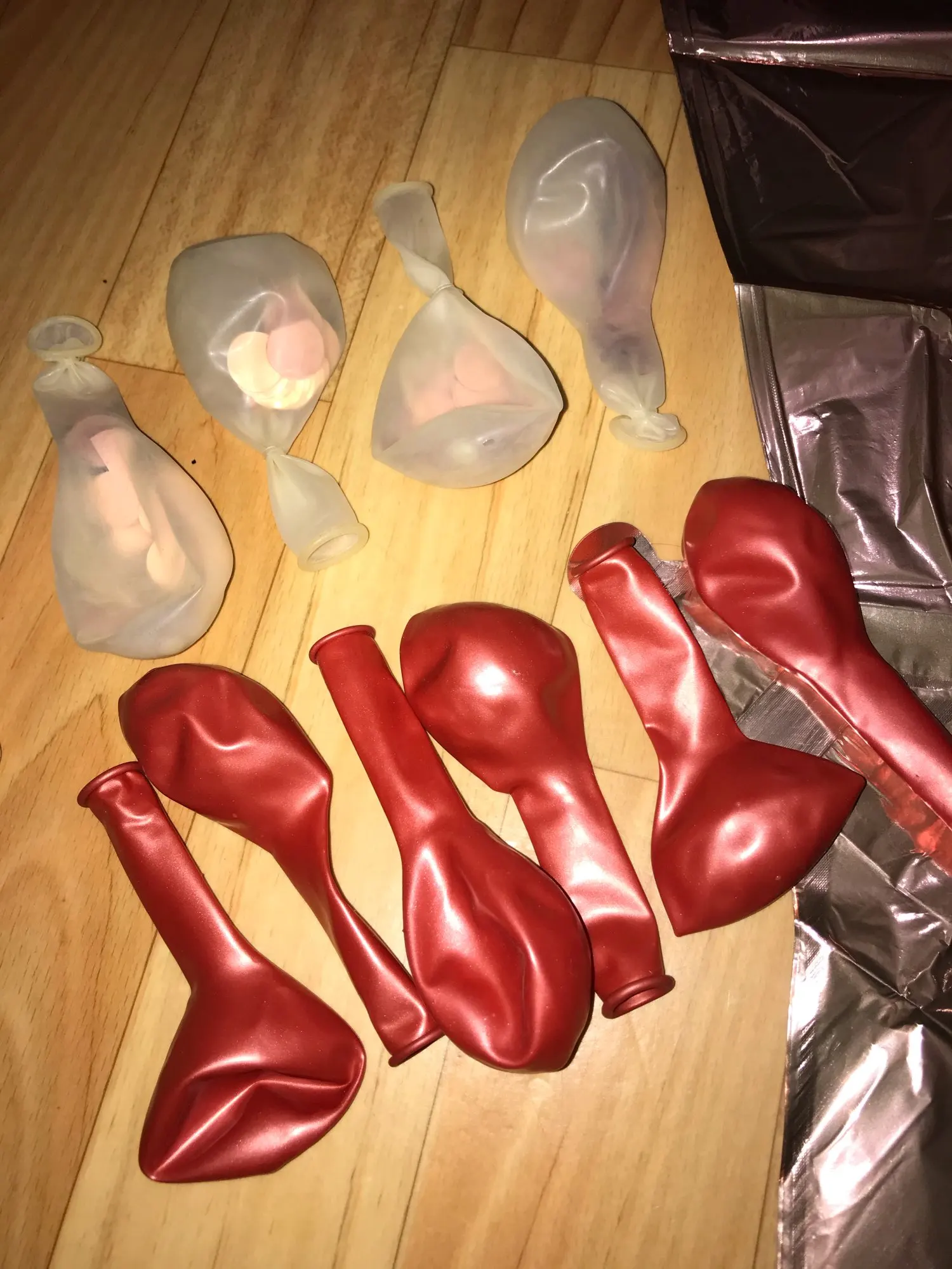 Товар не соответсвует картинке. Выбирала розово-золотистый цвет и из него только соответствуют сердце и звезда. Остальные шарики 5 шт прозрачные с конфети внутри в принципе соответсвуют, а 6 какие-то бордовые или даже не пойму точно что за цвет.