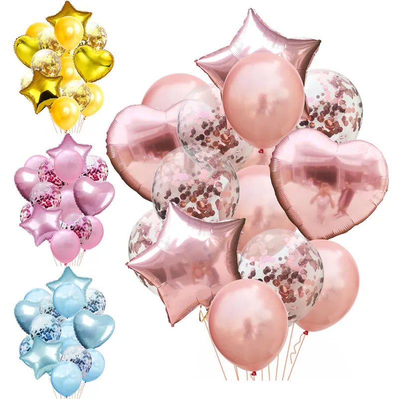 Набор воздушных шаров, 14 шт.лот, из розового золота, с конфетти