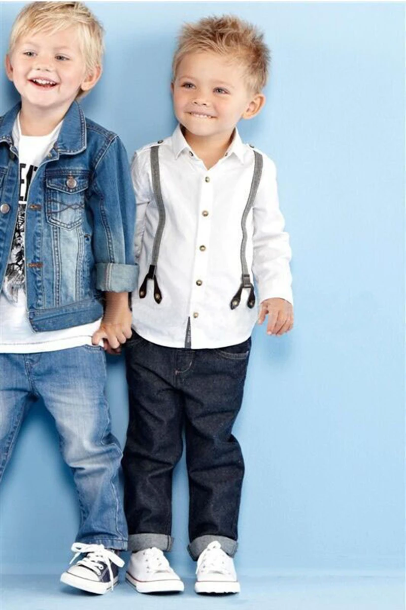 Детские рубашки классический дизайн на бретелях в английском стиле хлопок 100% Детские рубашки с длинным рукавом для мальчиков одежда
