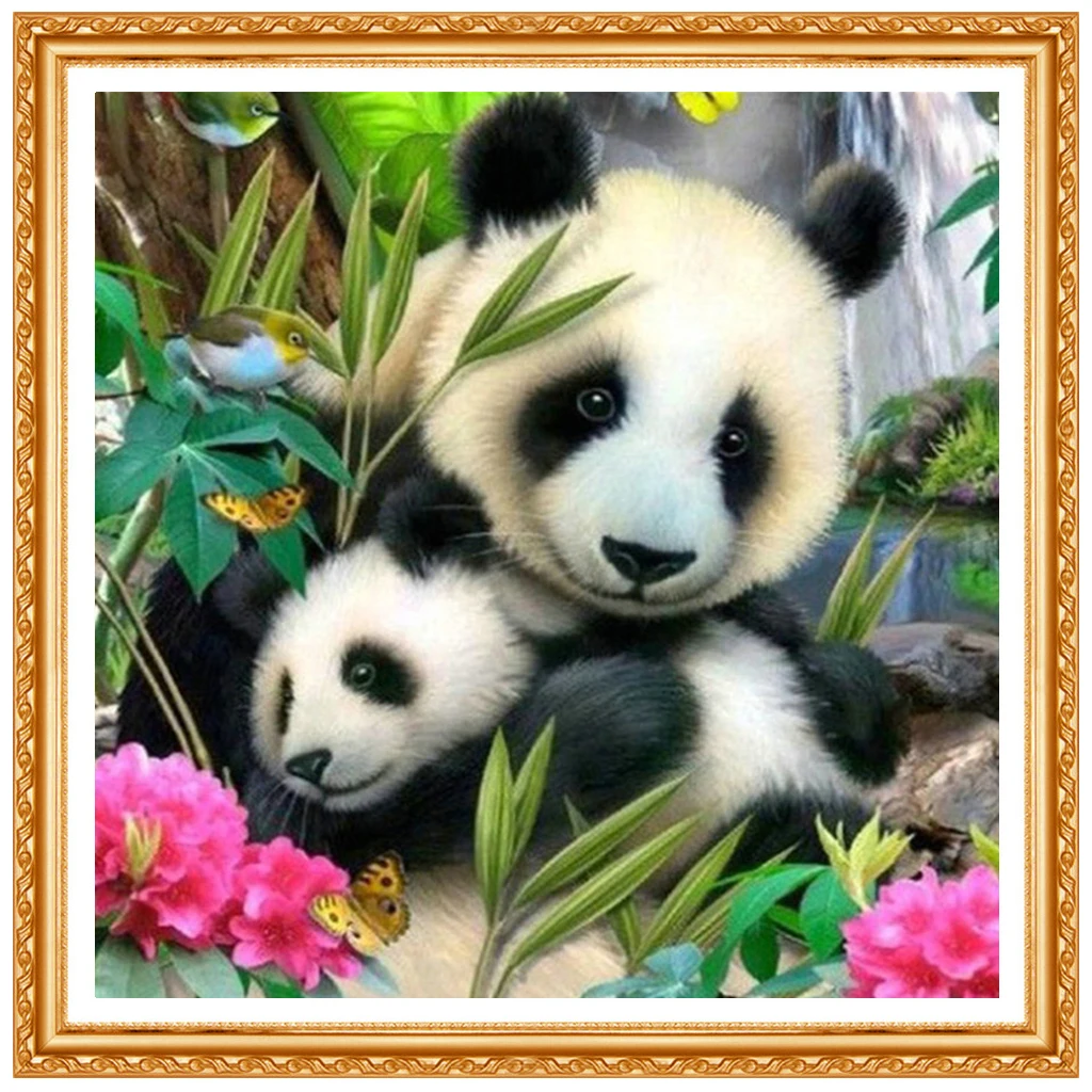 100% Полный 5D Diy Алмазная вышивка "Панда семья" 3D алмазная живопись Стразы Алмазная вышивка