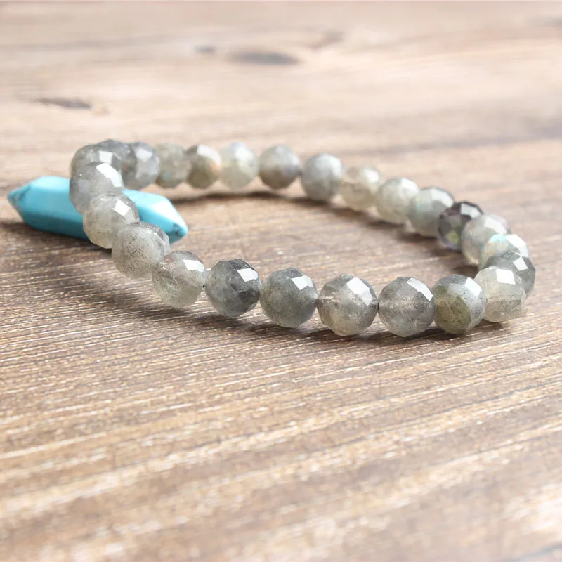 Lingxiang 6/8/10 мм модные натуральный ювелирные изделия из жемчуга граненый Лабрадорит бусины браслет шарма для мужчин Strand бусины Йога браслеты и браслеты