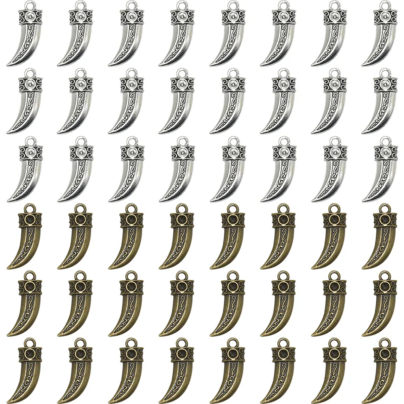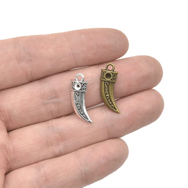 Оптовая продажа, 14 шт., посеребренные подвески в античном стиле из бычьего рога, змеиные зубы, аксессуары для рукоделия, изготовление ювелирных изделий 23*8 мм