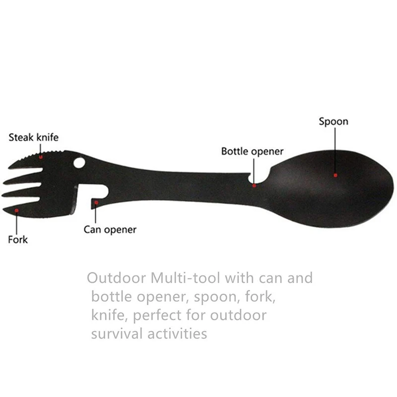 Открытый Кемпинг посуда нож ложка Вилка открывалка из нержавеющей стали Spork 5 в 1 мульти инструменты столовые приборы для пикника путешествия