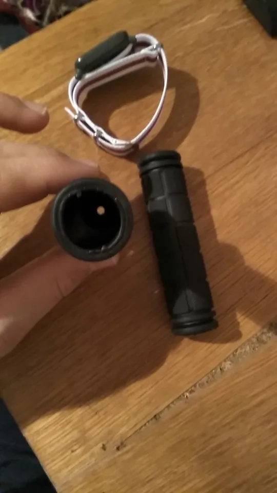 На руль сели плотно. Цвет как на фото. С торца дырочка, не знаю зачем.