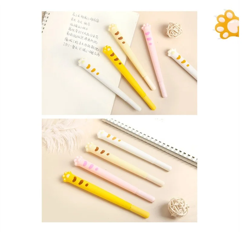 Набор гелевых ручек с милыми кошачьими лапками, 4 шт., 0,5 мм, черные ручки для письма, подарок учителю, канцелярские принадлежности для школы и офиса, F621