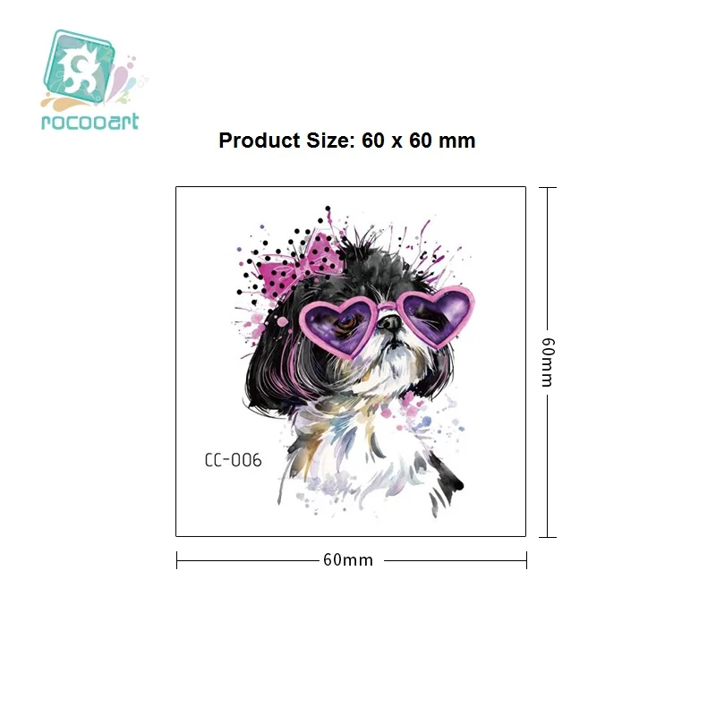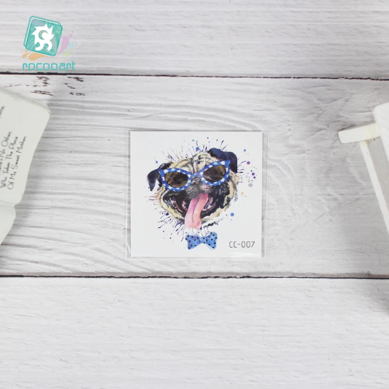 Стеклянные татуировки для собак Rocooart, милые животные, временная татуировка, наклейка для боди-арта, акварельные татуировки, водостойкая татуировка для рук