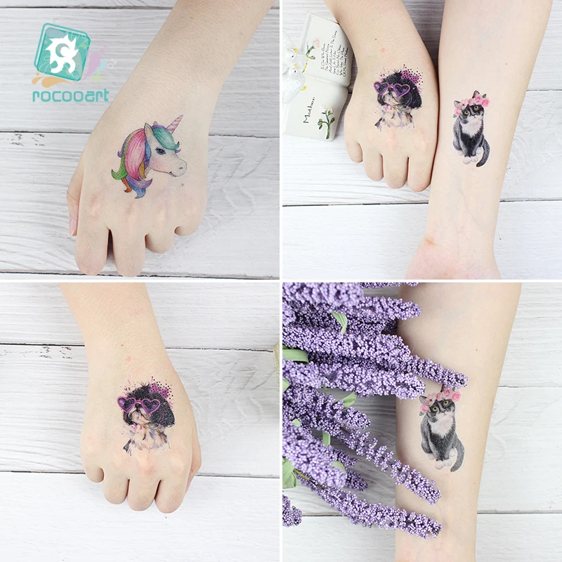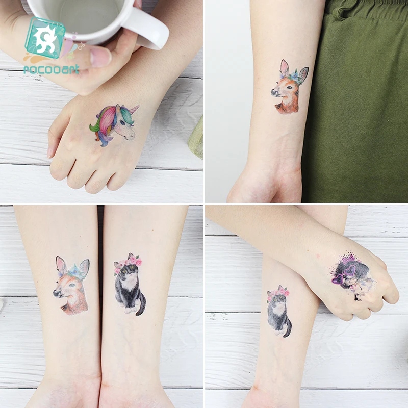 Rocooart, Мультяшные животные, тату, детские поддельные татуировки,...