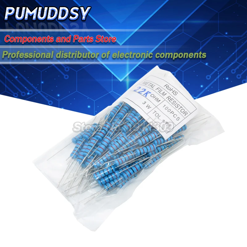 Металлопленочный резистор 3 Вт 1% 1R 1M 1R 4.7R 10R 22R 33R 47R 1K 4,7 K 10K 100K 1 4,7 10 22 33 47 4K7 ohm, 50 шт.