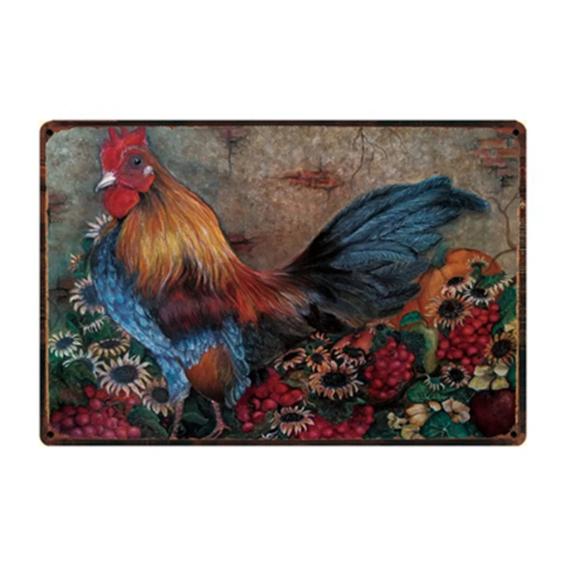 Металлический плакат Mike86 с изображением птиц, пересекающих ферму...