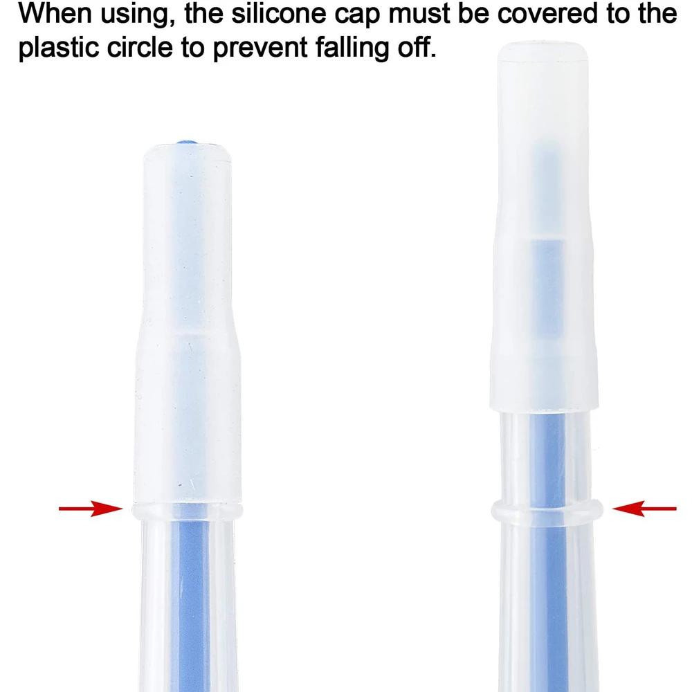 В комплекте две одинаковые насадки, хотя в описании пишут что отдельно для таблеток и жидкостей. Не пользовалась, т.к. пока ждала научилась запихивать таблетку с помощью обычного шприца с водичкой