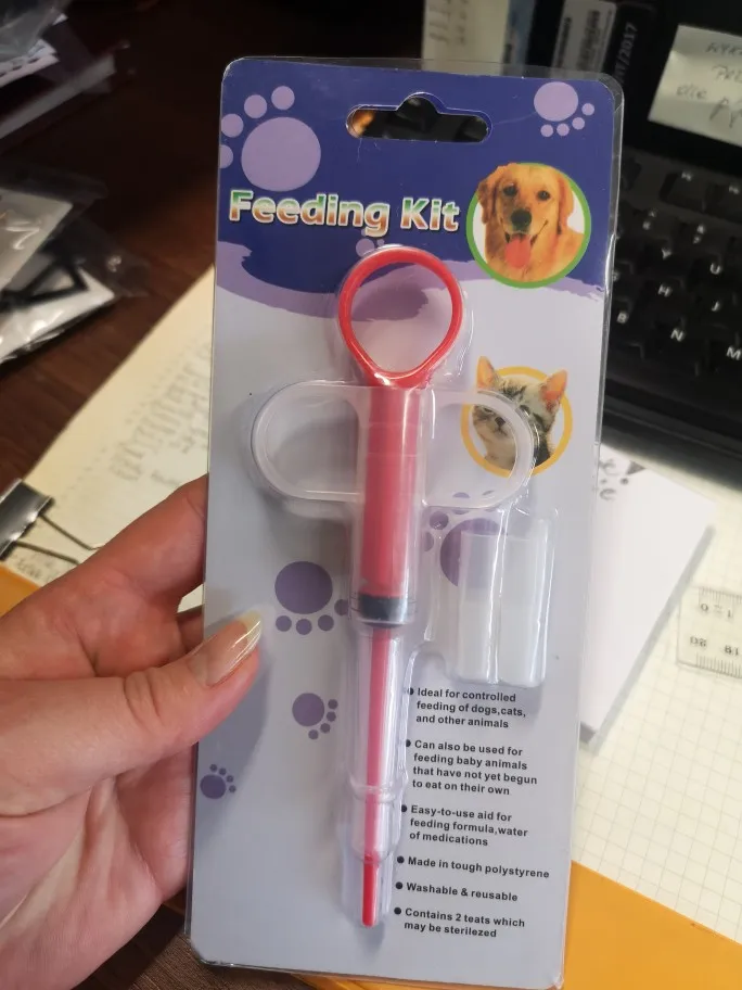 очень удобная для жидких лекарств животным,выручает для не послушный наших младших друзей,спосибо