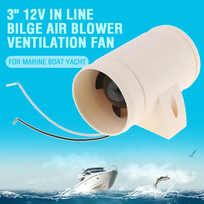 3-дюймовый встроенный воздушный вентилятор для лодки, трюмный двигатель, кухонный морской вентилятор, 12 В, кубмин, коррозионно-стойкий пластик для лодки, яхты и т. Д.