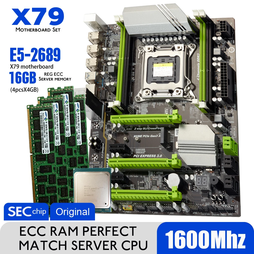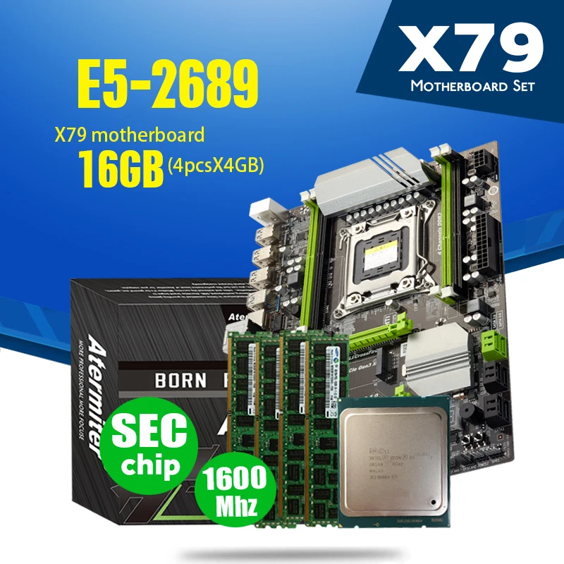 Материнская плата Atermiter X79 Turbo, LGA2011, ATX Combos E5 2689, ЦПУ 4 шт. x 4 ГБ = 16 ГБ, DDR3 ОЗУ 1600 МГц, PC3, 12800R, PCI-E, NVME, M.2 SSD