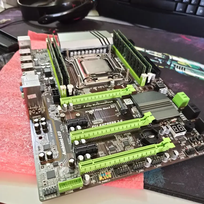 Заказывал 9 ноября (понедельник, вечер) с доставкой из России, заказ пришел 14 ноября (суббота, обед). Доставил курьер домой. Упаковано хорошо, процессор уже вставлен в сокет. Завелось всё с 1 раза, сразу прошил биос (делов 5 минут, прошивку можно найти в группе вк "Купи Дешево"). Память выставил на 1866 (2133 даже пробовать не стал). Гемор с подключением передней панели, схему и тайминги для памяти ищите в отзывах. На материнки 3 разъема для кулеров, и 1 sata 3 (разъемов sata 2 до ж*пы), не забудьте учесть данный момент :) В работе проблем нет, в стресс-тестах темп. не выше 63 градусов. Кулер стоит Gammax 300, думаю позже сменить на Gammax 400 + 4 вертушки в корпусе (3 на вдув, 1 на выдув). Также заколхозил 1 маленькую вертушку (90мм) на обдув vrm, совет из той же группы вк (сделал на всякий от греха подальше). Мой конфиг: Комплект: X79 Turbo, E5 2689, 16Gb Видеокарта: 1650super (Palit самая дешевая) Охлаждение: Gammax 300 fury Блок питания: Cougar VTE600 Рекомендую!