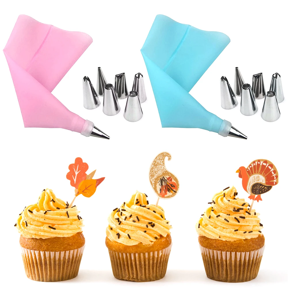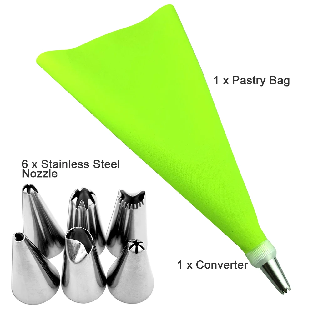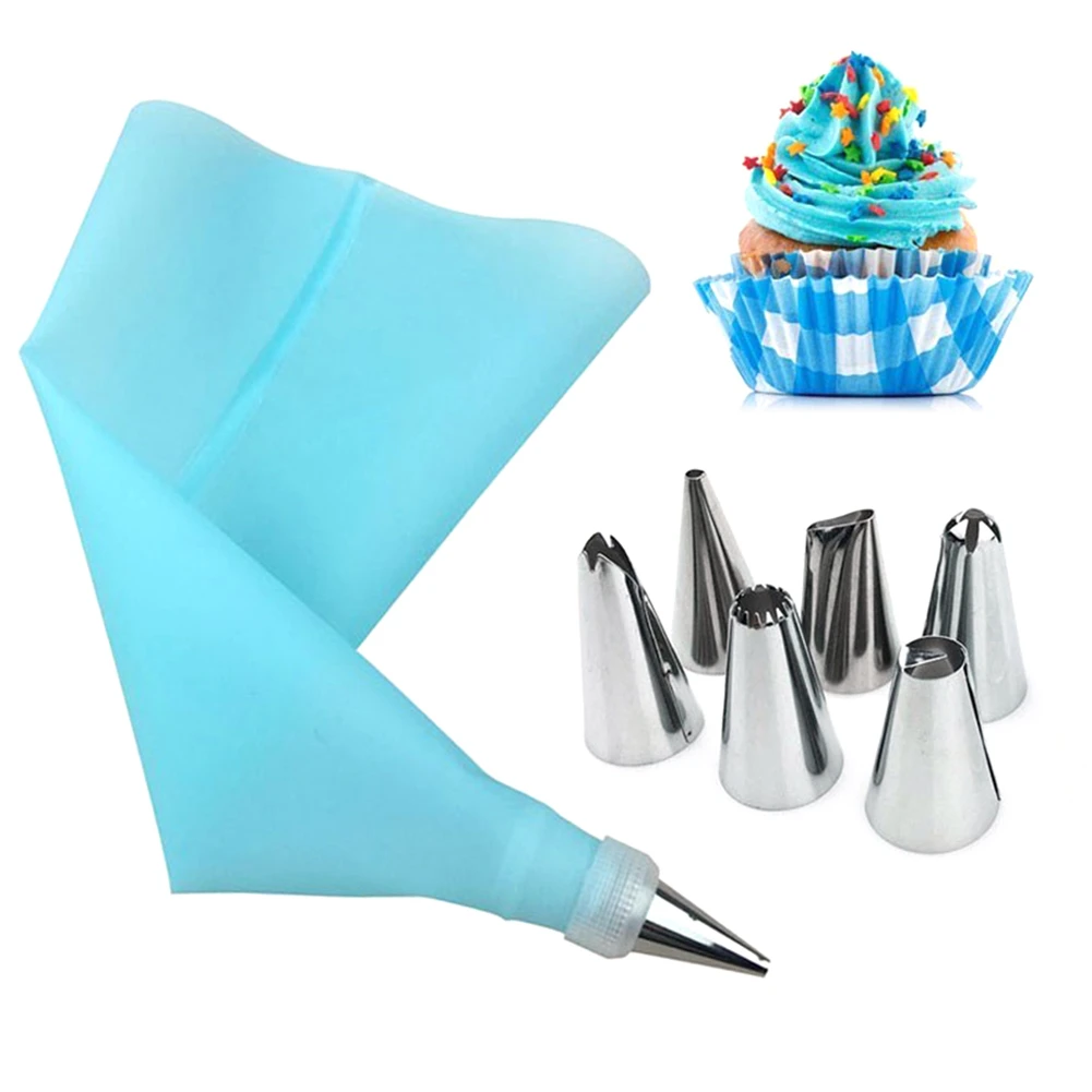 8 шт.компл. силиконовый кондитерский мешок для айсинга и крема + 6 штук насадок из нержавеющей стали