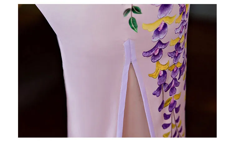 Sheng Coco 4XL фиолетовое платье Qipao с цветочным принтом, традици...