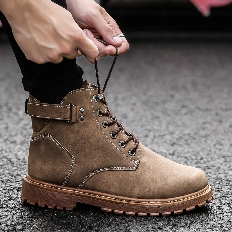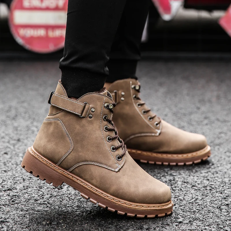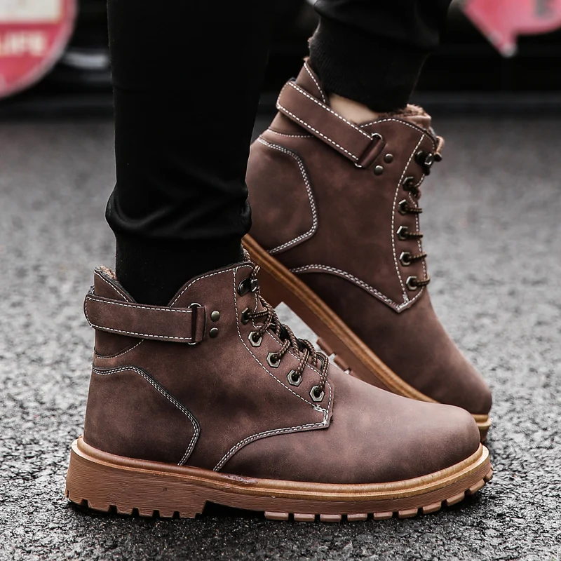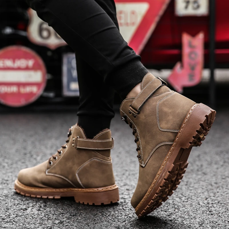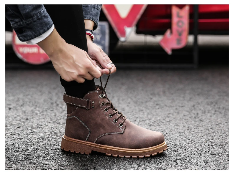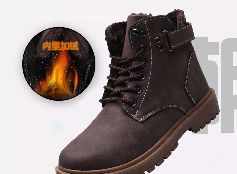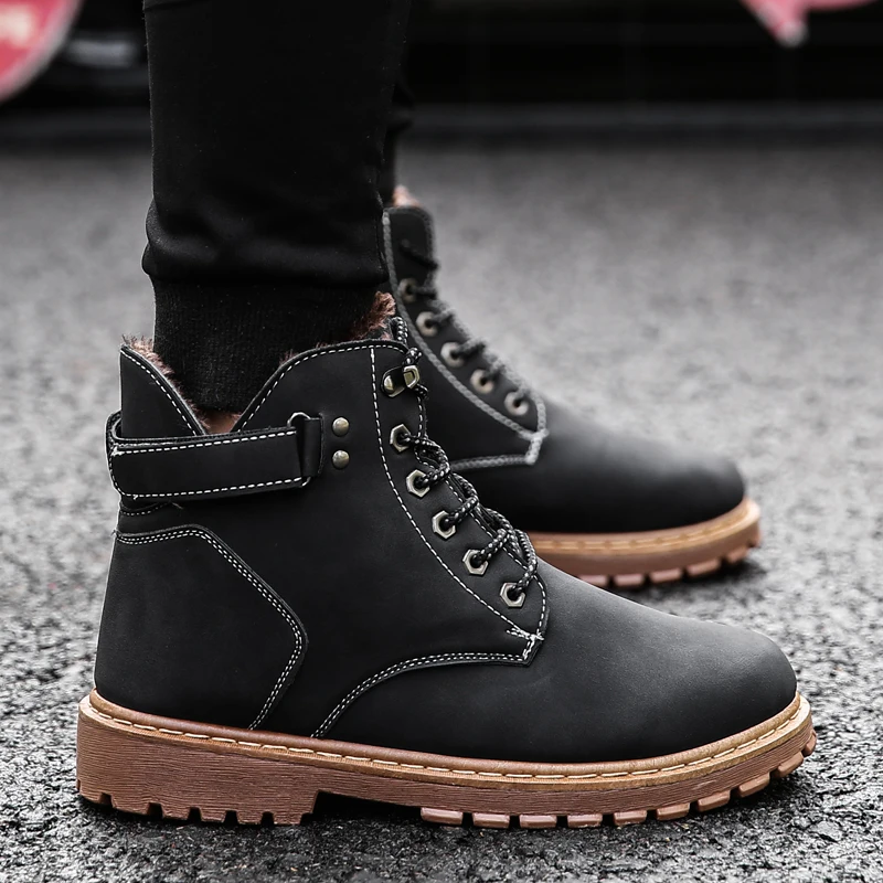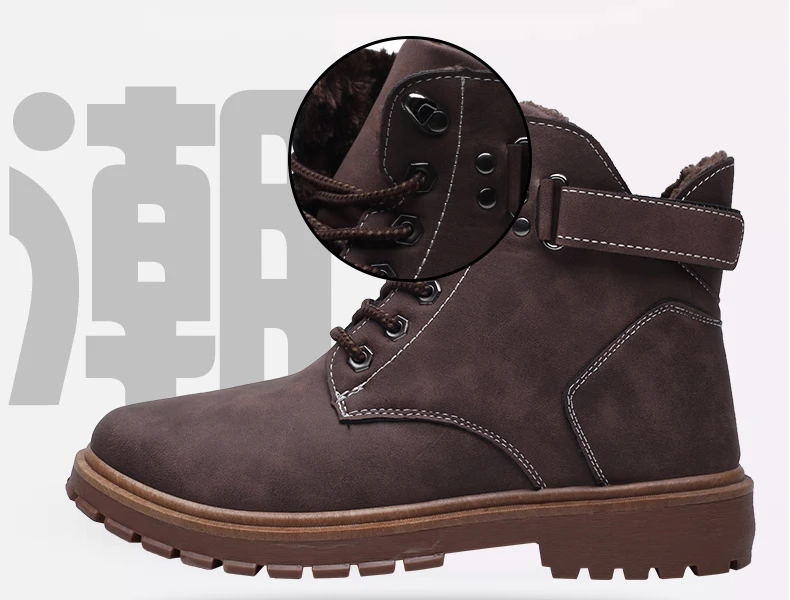 Новинка; сезон осень-зима; зимние мужские ботинки из искусственной кожи; ботинки в байкерском стиле с мехом; теплые винтажные классические мужские повседневные ботинки