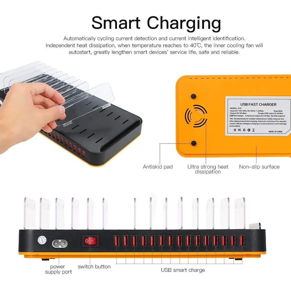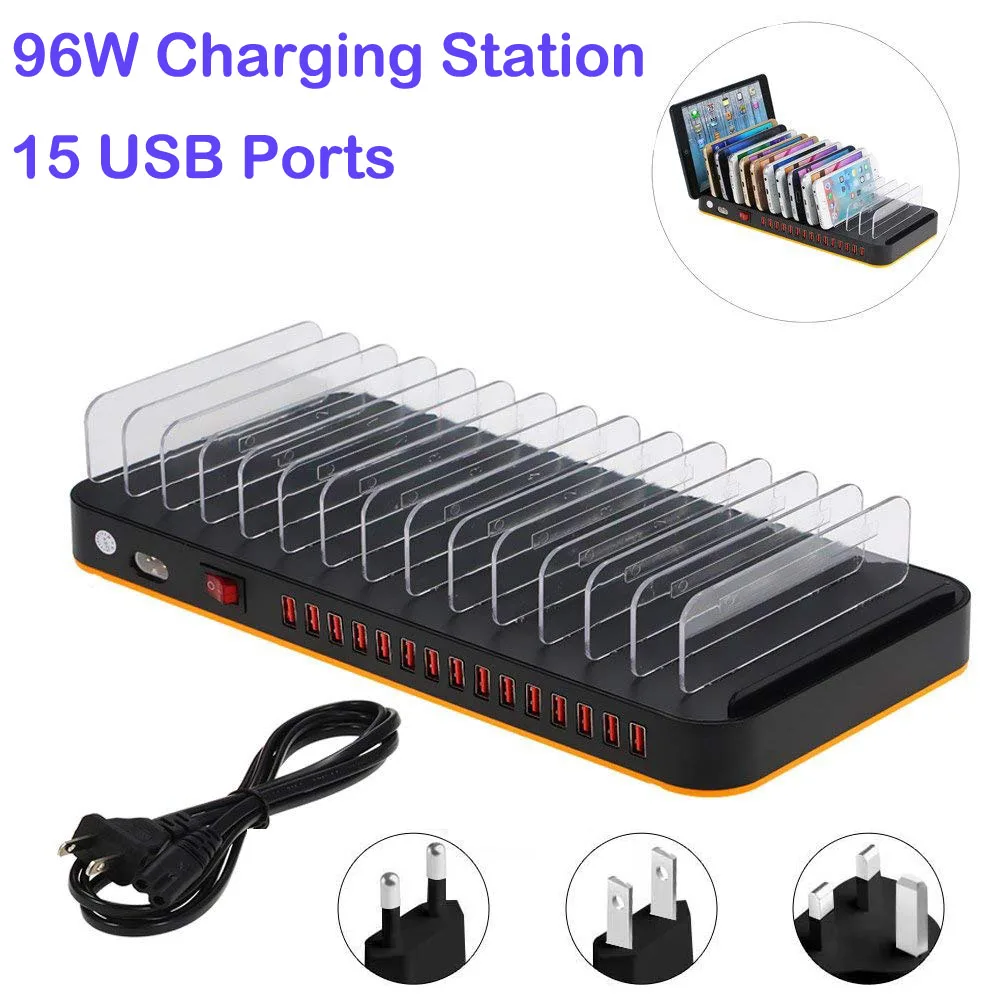 Универсальная зарядная станция с несколькими USB-разъемами, 15 портов, для Iphone X, 8 Plus, Samsung S10, 9, Xiaomi, HuaWei, планшетов с функцией быстрой зарядки, 96 Вт