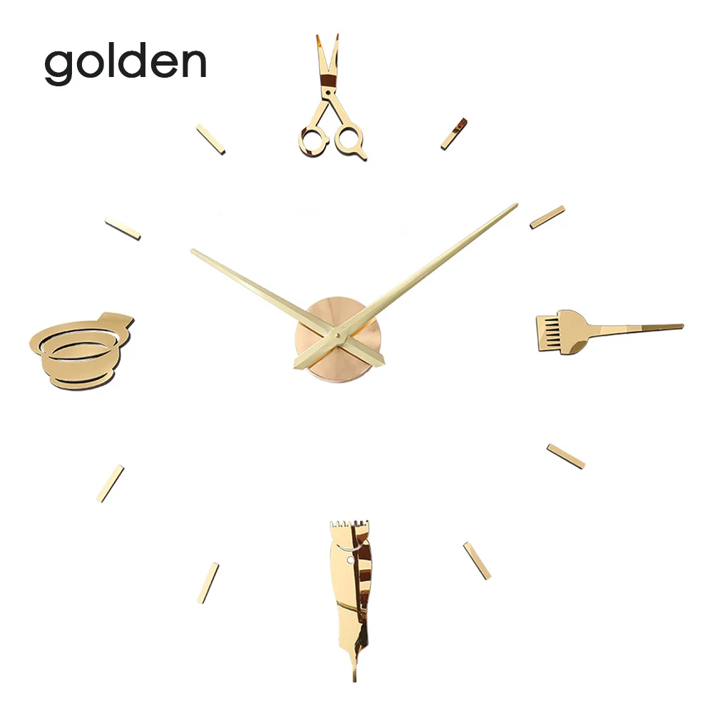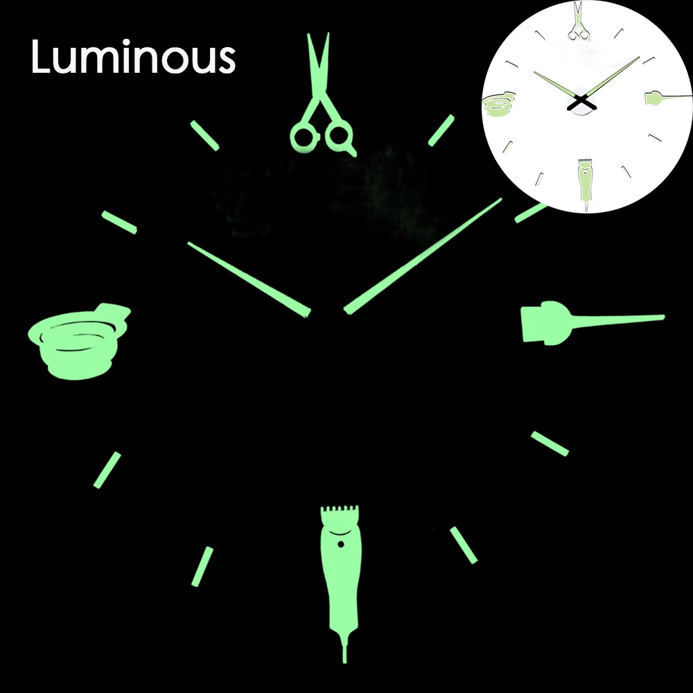 Светящиеся Настенные часы 3d в современном стиле, большие часы с зеркальными наклейками, для парикмахерских и парикмахерских
