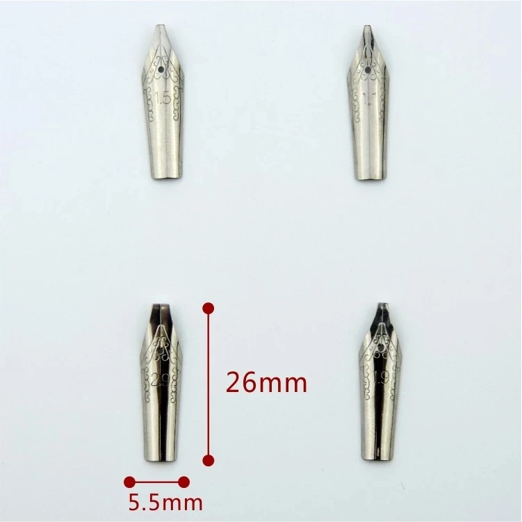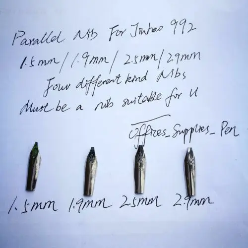 Я хотел перо № 5, и единственная подсказка, которая казалась близкой к описанию размера, была «перо пера для 992». Я видел в обзоре пера, что размер пера Jinhao 82 был таким же, как 992, и я хотел заглушки для Jinhao 82, которые я заказал вместе с этим пером. Мое предположение оказалось верным, и перья, 1,1 мм и 1,5 мм заглушки курсиво подходят идеально и красиво написаны.