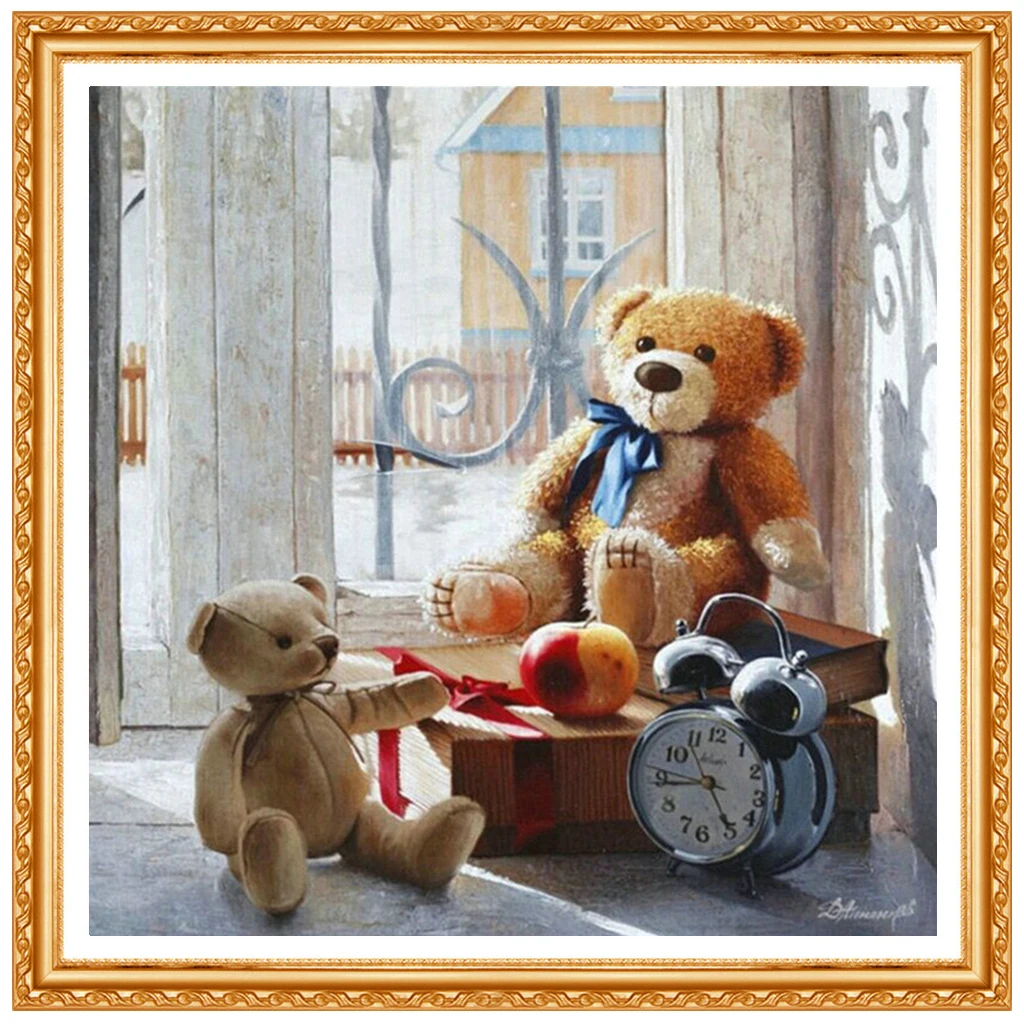 Плюшевый медведь алмазная живопись, diy квадратная алмазная живопись, алмазная вышивка плюшевый мишка