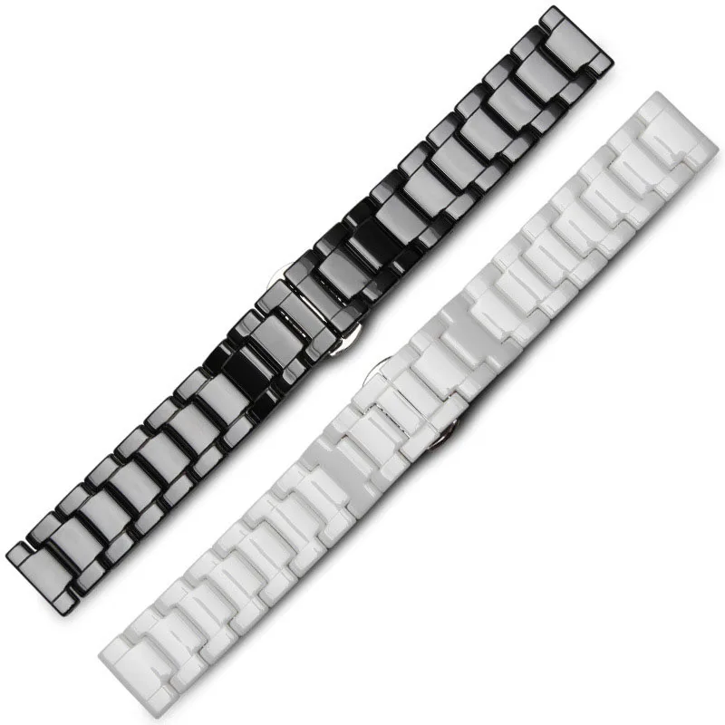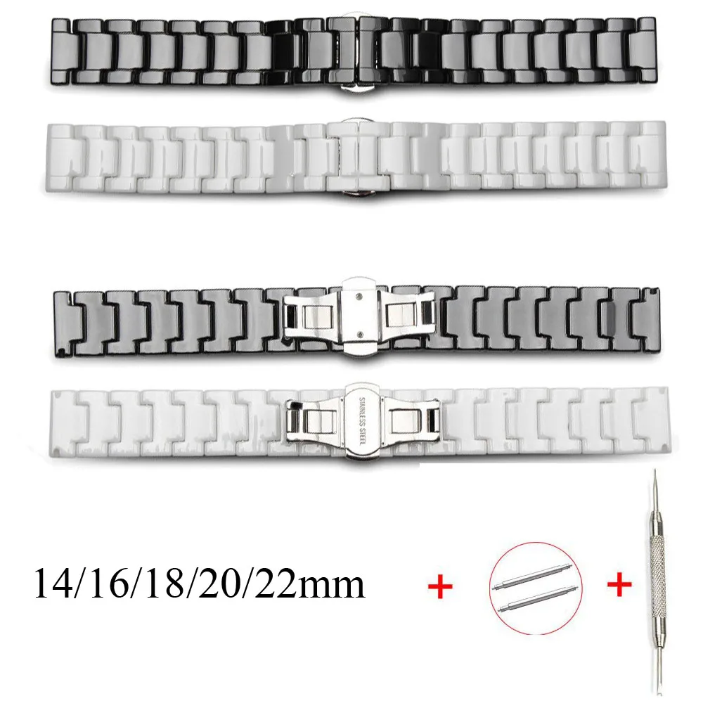 Ремешок керамический для наручных часов, универсальный браслет из керамики белого и черного цвета, 14 мм 16 мм 18 мм 20 мм 22 мм