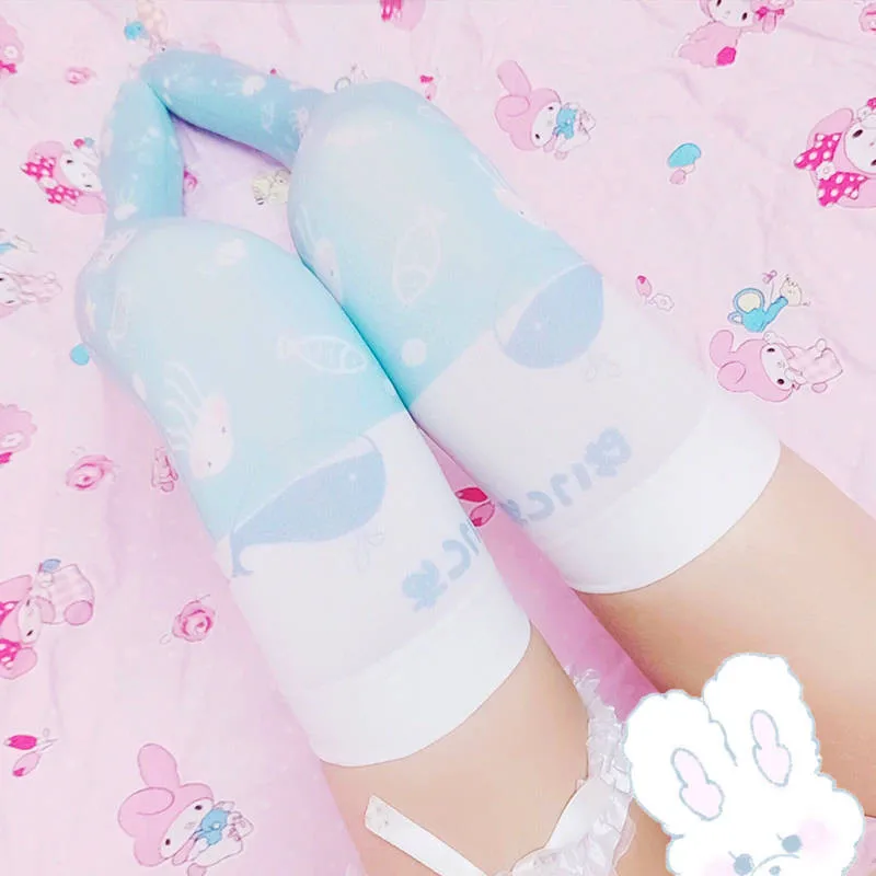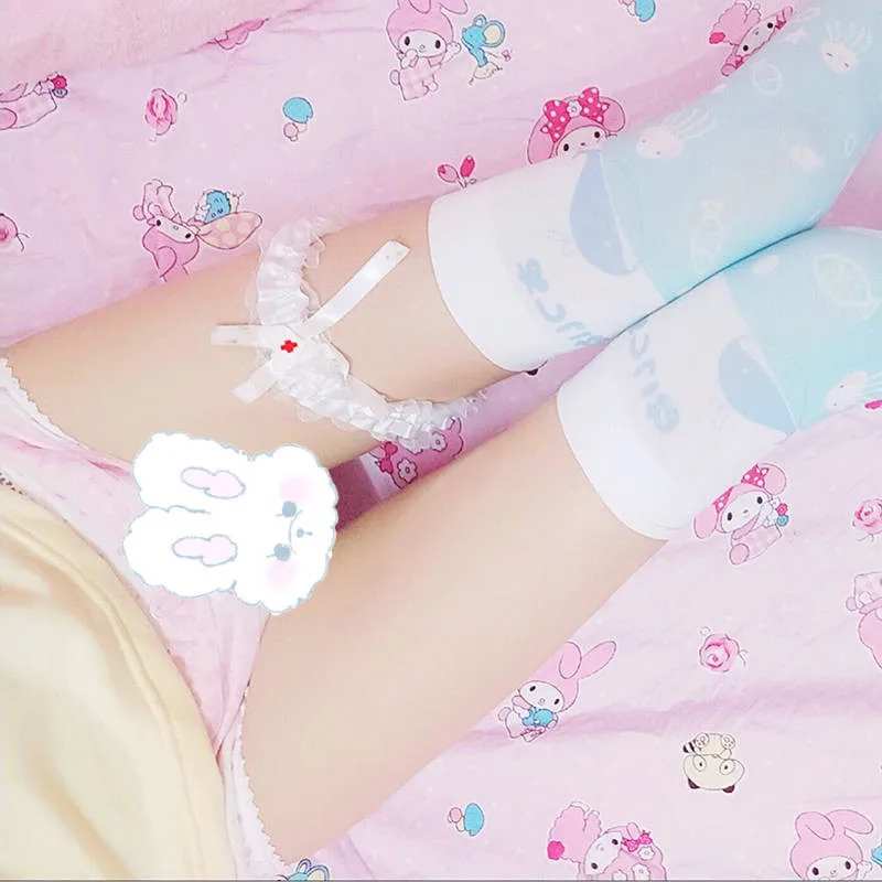 Женские чулки выше колена в стиле "Лолита", чулки до бедра с принтом, Длинные чулки для косплея, хорошее качество, милые аниме 5SW18