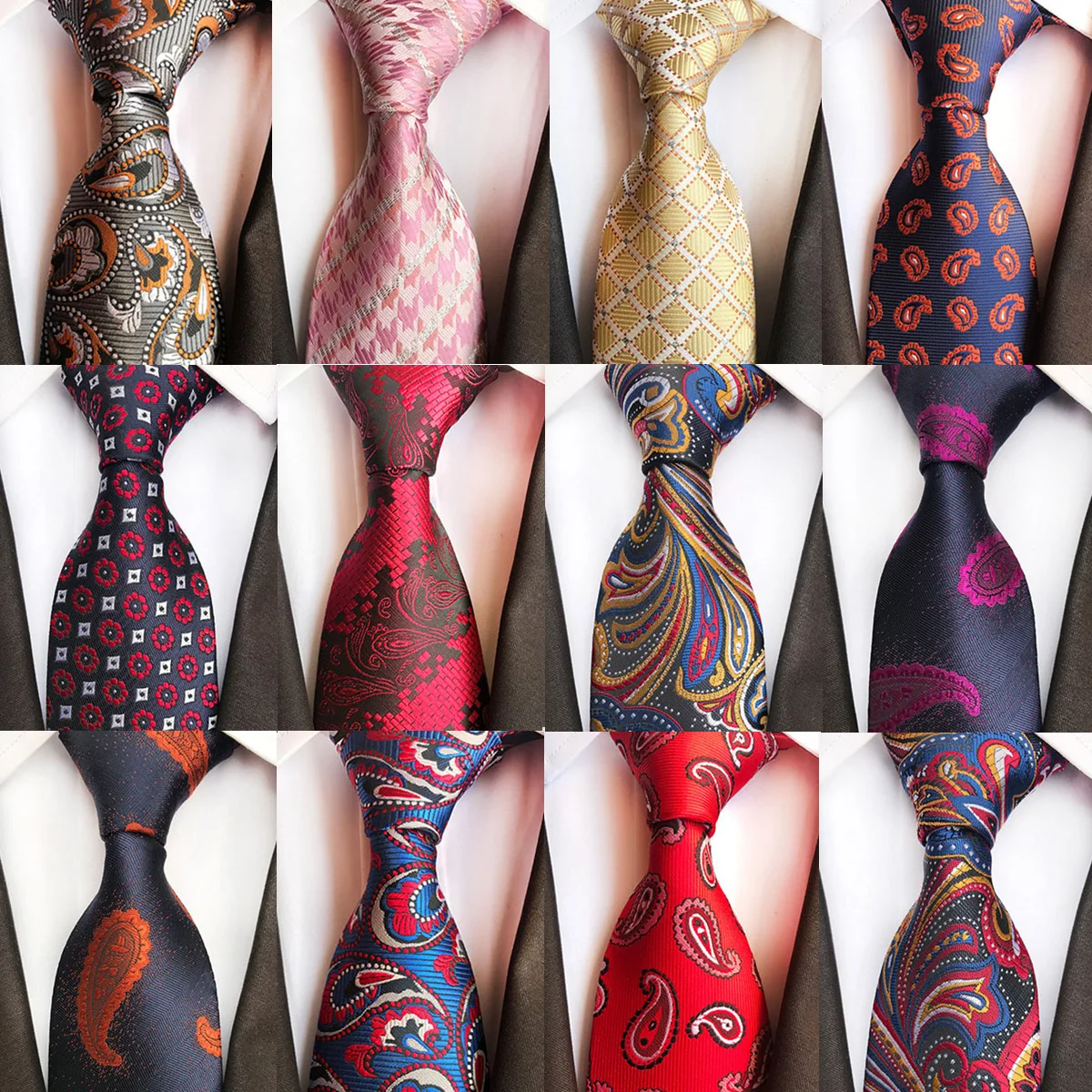 Классический шелковый мужской галстук, 8 см, красный, желтый, с цветочным рисунком, Пейсли, жаккардовый галстук для мужчин, деловой, Свадебный, Официальный галстук, аксессуары, подарок