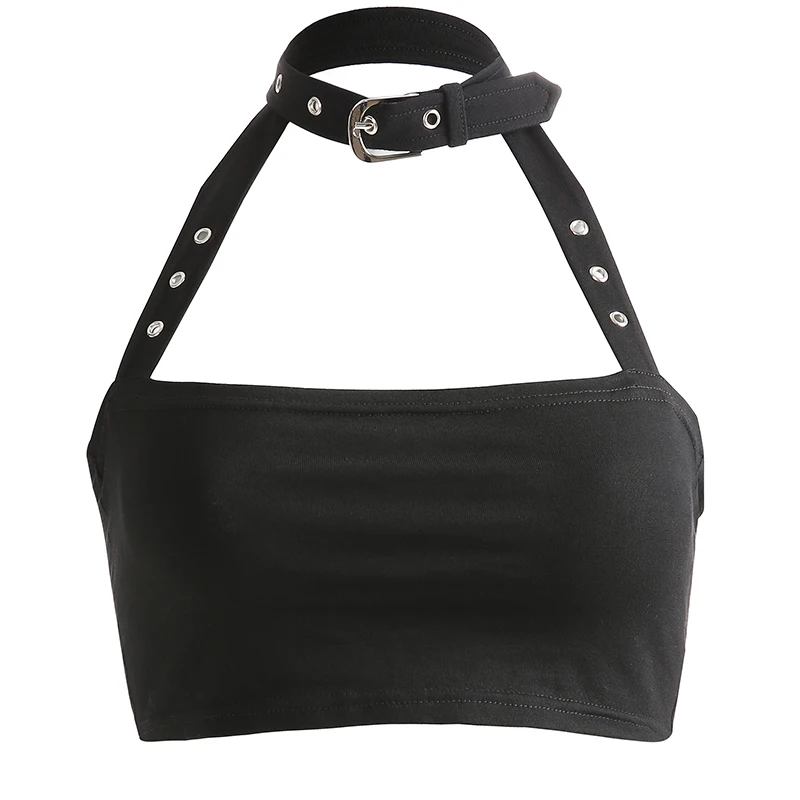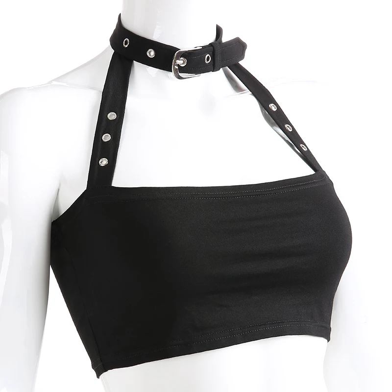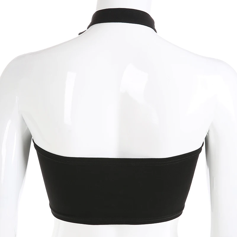 Женский укороченный топ с металлическими люверсами и открытой спиной