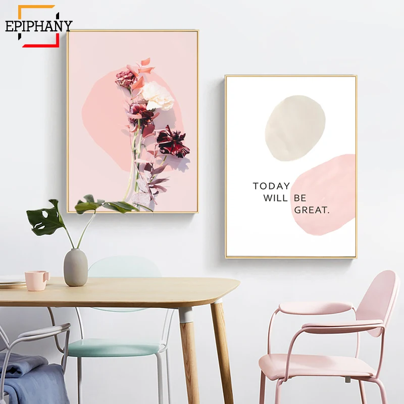 Современные настенные художественные напечатанные Румяна Розовый декор для стен спальни положительное подтверждение Цитата скандинавские модные цветочные позы и принты