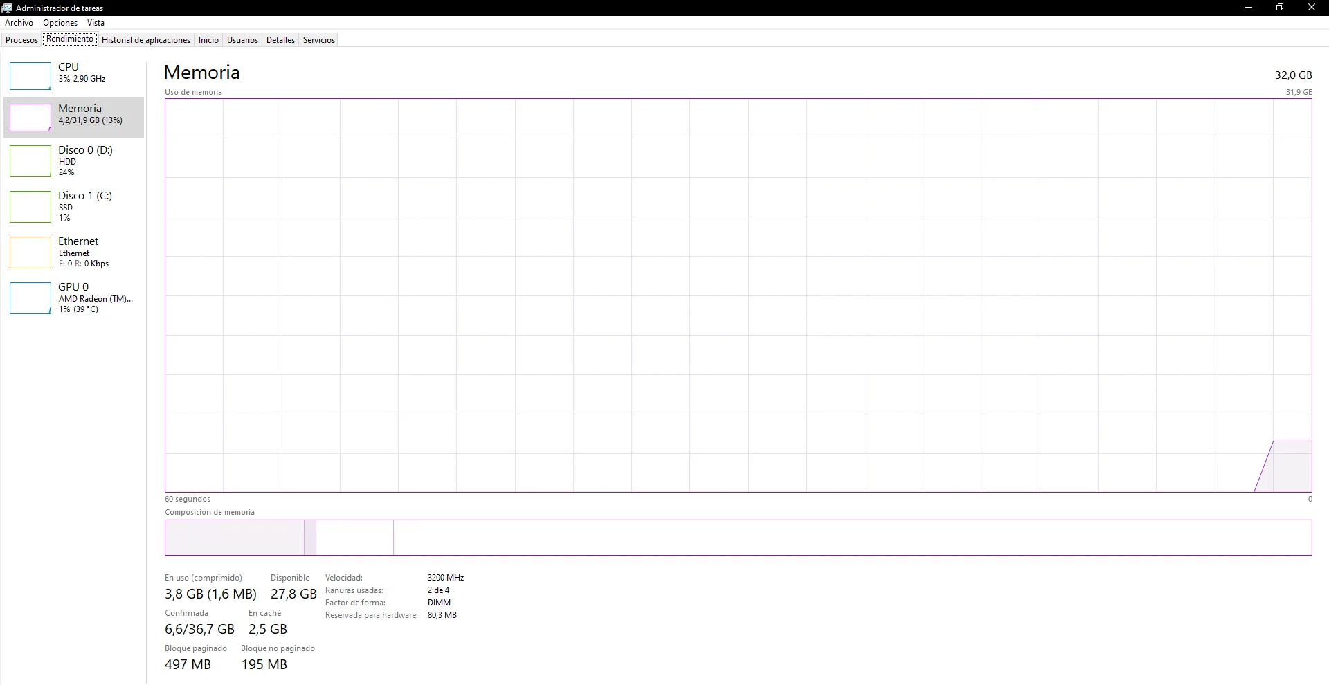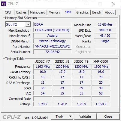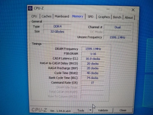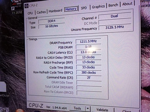 Я должен был вручную изменить его с 2400 до 3200 МГц с помощью биос, но теперь он работает как предназначенный и в двухканальном. RGB дает хороший вид. Для тех, кто читает, изображение показывает ~ 1600 МГц, но это должно быть таким образом. Это показывает половину частоты бега.
