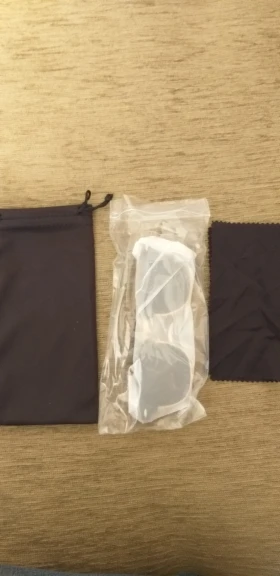 В комплекте к очкам есть: мешочек тряпочный, салфеточка и такая картинка которой можно проверить поляризацию (для очков у которых она есть).
