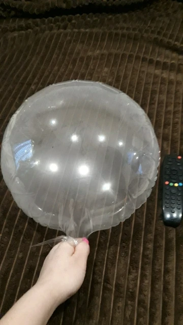 Хороший шар, единственное но... нет никакого зажима, не чем его завязывать, а завязать его не очень просто так, чтобы он не сдулся, так как отверстие очень большое. Вобщем нужно сначала закрутить его, а уже затем завязывать. Ну смотрится неплохо, можно было и по-больше размер брать. Боялась, что на поддоконник не поместится.