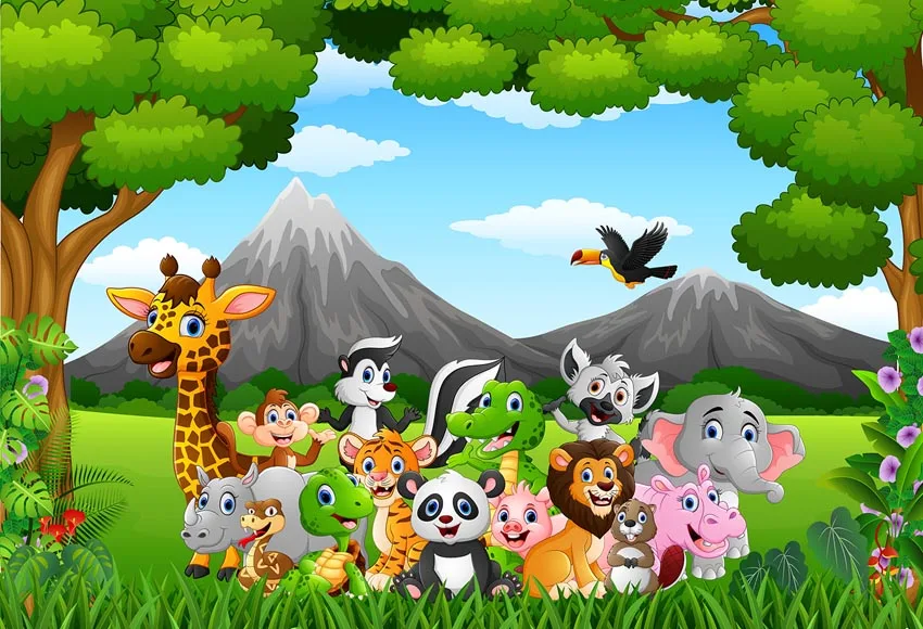 Виниловый фон для фотосъемки с изображением леса в стиле сафари, зоопарка, животных, панды, жирафа, леса