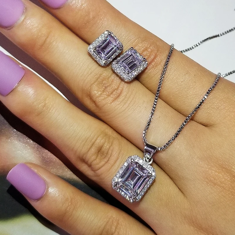 Комплект ювелирных изделий из серебра 925 пробы, с круглыми кристаллами, 2 шт. в упаковке