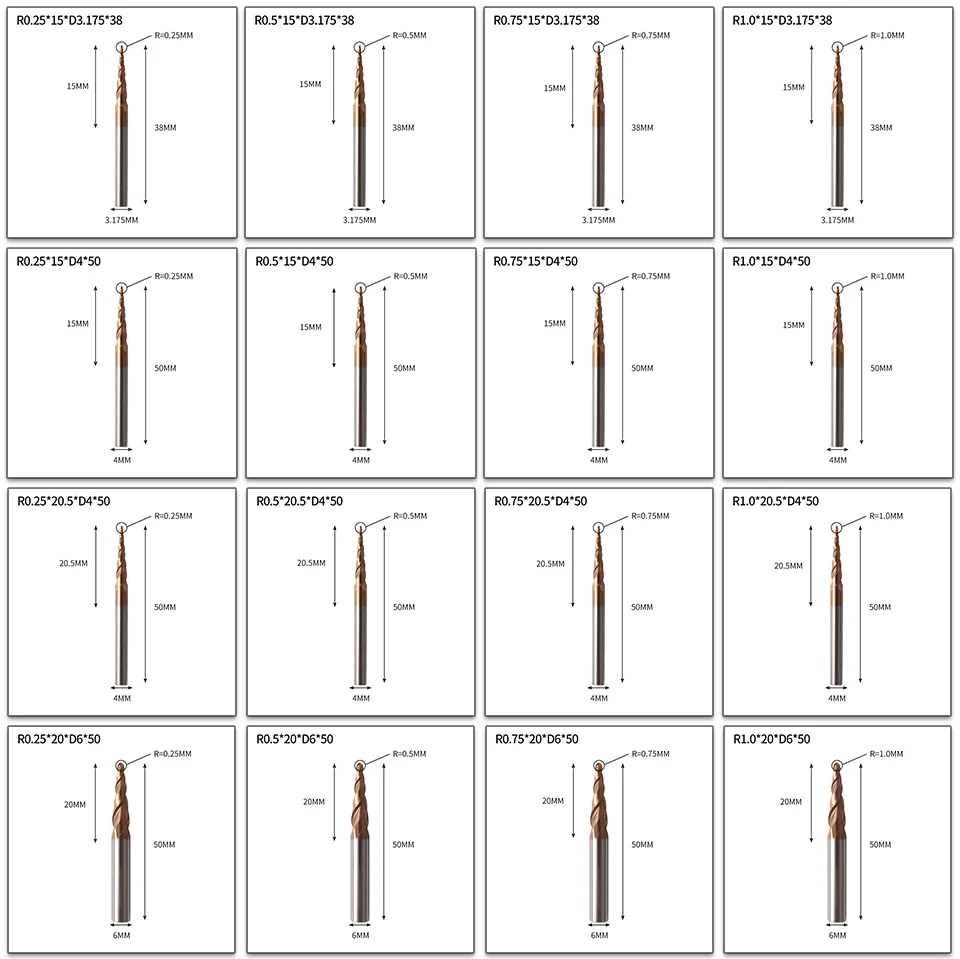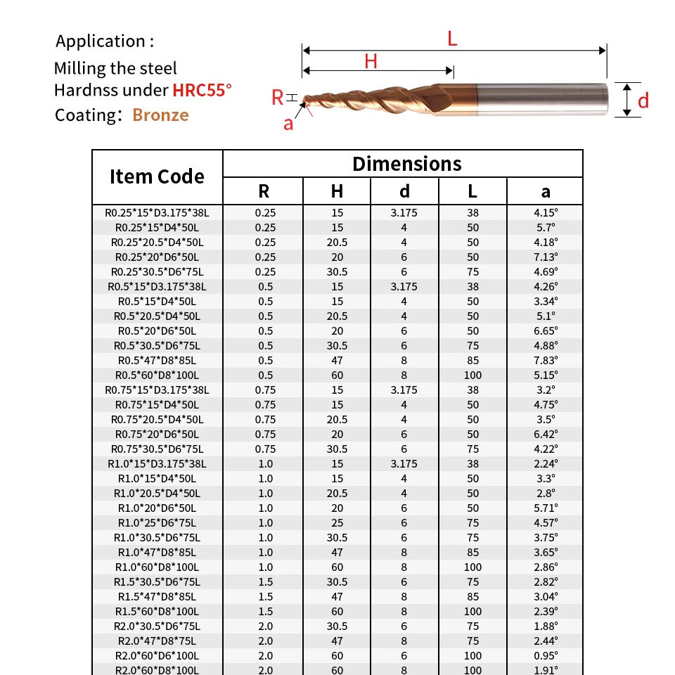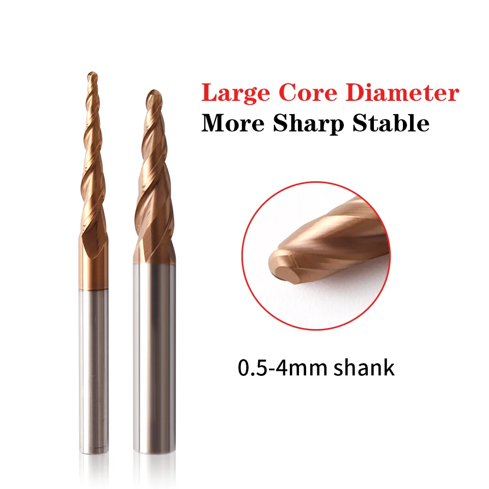 AUGT HRC60 коническая Концевая фреза из карбида вольфрама Фрезерный резак из дерева и металла режущий фреза 3,175 мм 4 мм 6 мм 8 м
