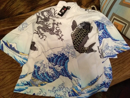 В целом Haori выглядит хорошо. Есть много фотографий этого продукта или аналогичного товара во время совершения покупок, однако я думаю, что фотографии несколько обманчивы. Продавец не использовал эти фотографии, но трудно не связать эти изображения с этим товаром. Haori намного меньше, чем ожидалось. Мой прокс. Рост 5'5 ", и haori немного длиннее моей талии. Было бы немного лучше, если бы он был немного выше середины бедра. Ткань выцветает, и детали показаны. Когда вы смотрите на левую сторону haori, вы заметите, что текст отрезан на швах. Я заказал размер XL, а пока он сидит и свободно, я думаю, что больший размер лучше в целом для дополнительного роста.