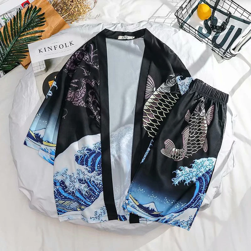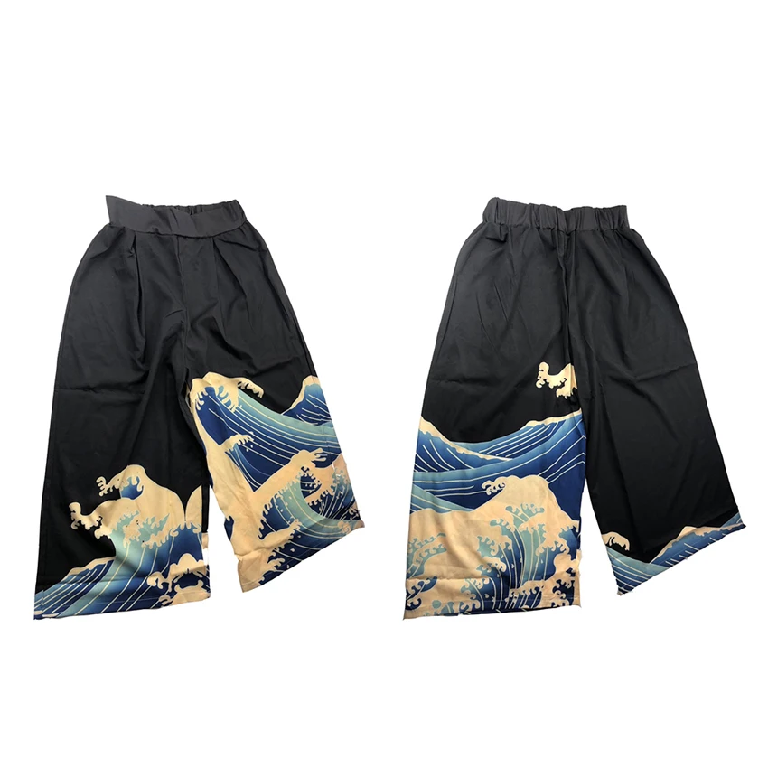 Унисекс женское японское кимоно Харадзюку, тонкое солнцезащитное пальто, кардиган Ukiyo, Мужские Широкие штаны, свободные шаровары для отдыха
