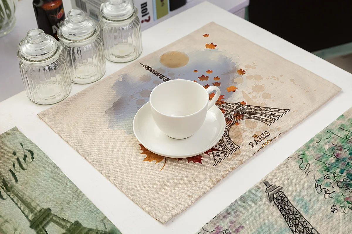Романтический французский архитектурный напечатанный льняной Настольный коврик Парижская башня Пизанская узорная подставка для телефона красная скатерть
