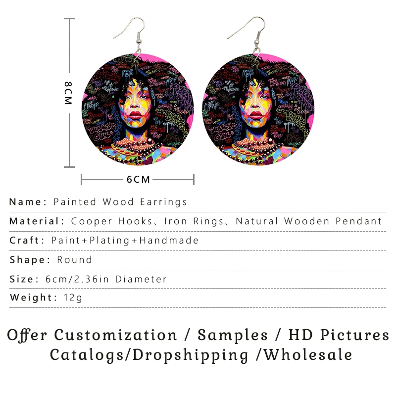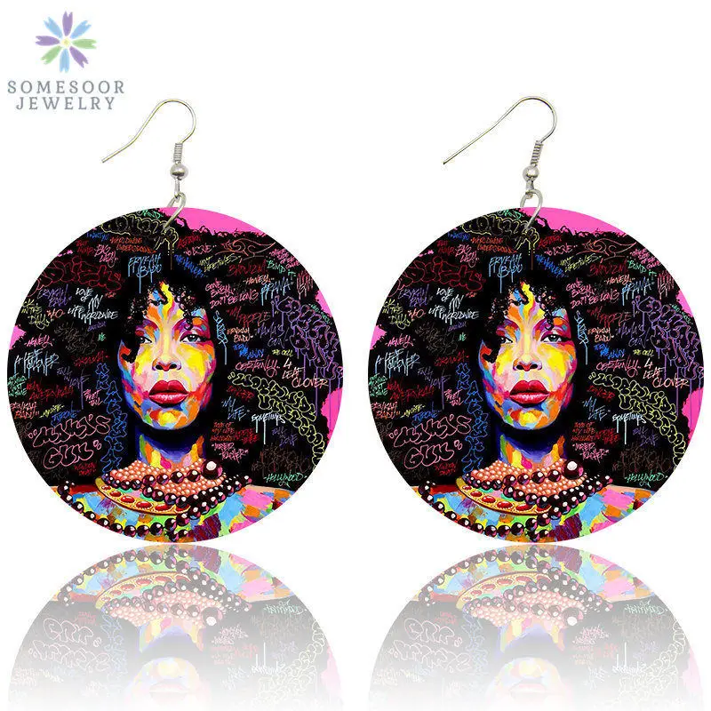 SOMESOOR, Африканская женщина, натуральные волосы, двусторонняя роспись, африканские деревянные висячие серьги, фотографии, печатные хип-хоп ювелирные изделия для женщин, подарки