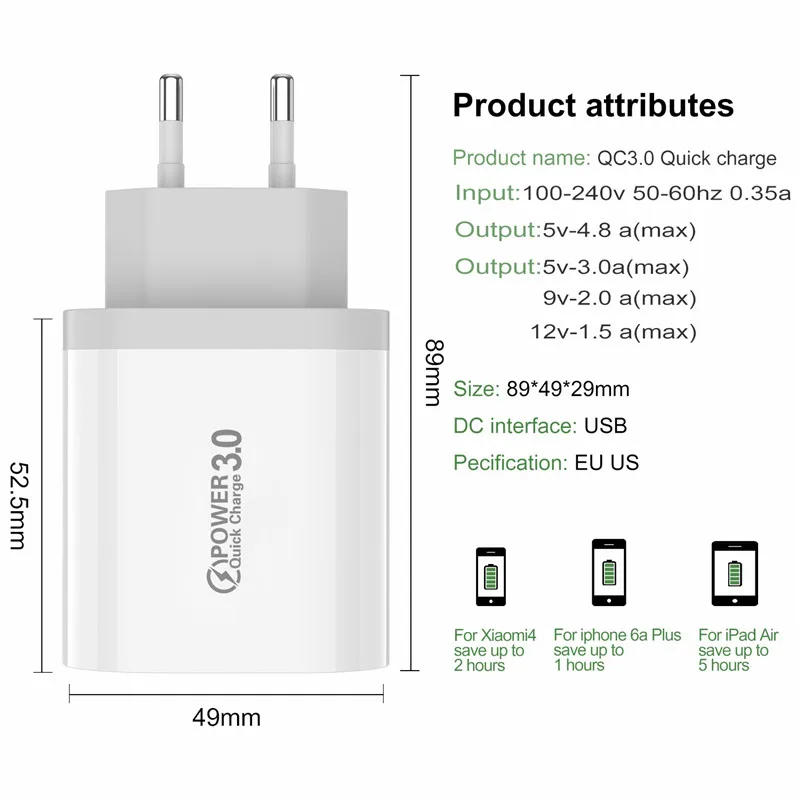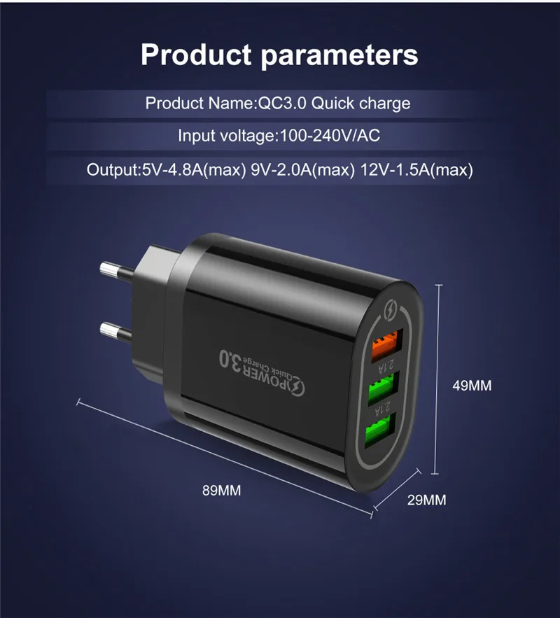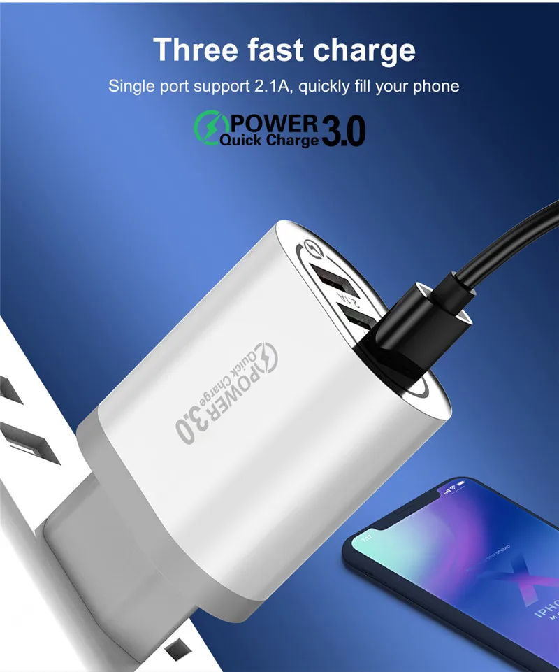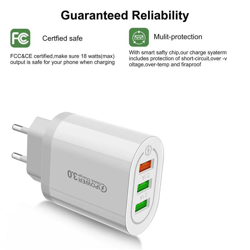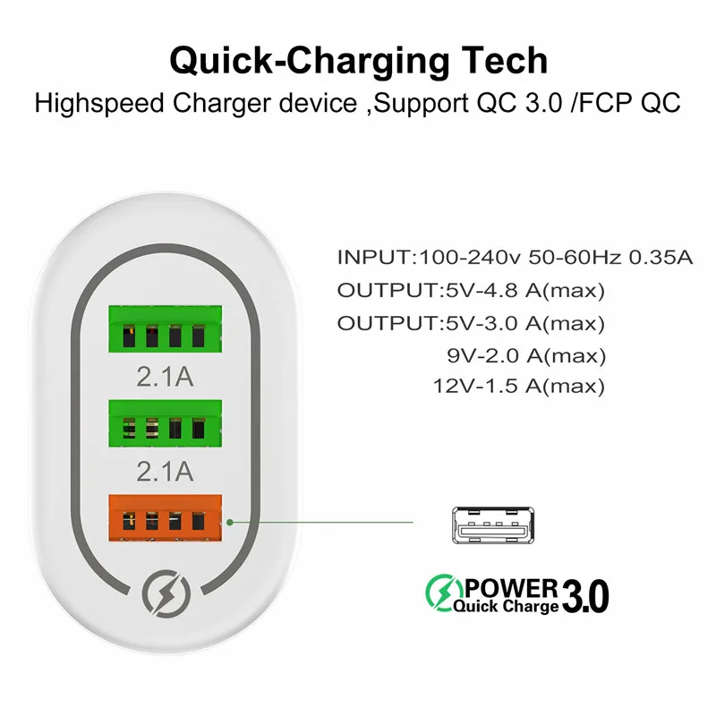 Зарядное устройство USLION с 3,0 USB для смартфонов